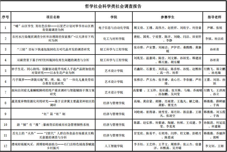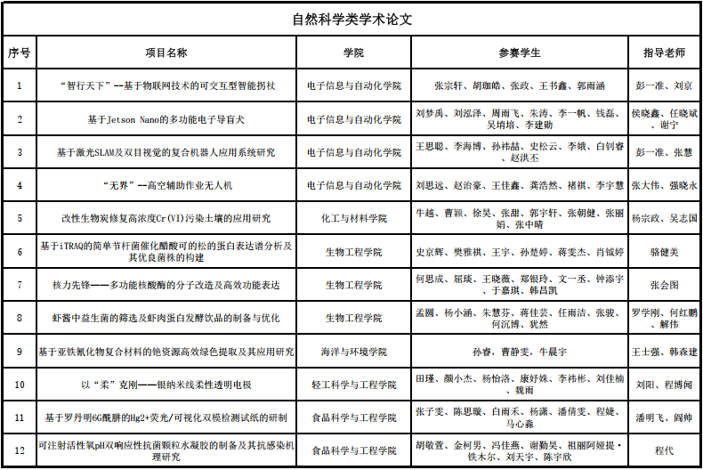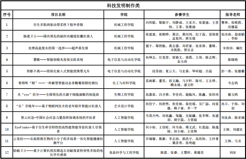 附件:天津科技大学推荐参加第十七届“挑战杯”天津市大学生课外学术科技作品竞赛作品名单