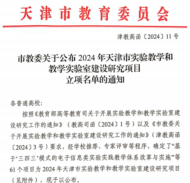 近日,市教委下发了《关于公布2024年天津市实验教学和教学实验室建设研究项目立项名单的通知》,我校《面向未来、产教融合、虚实结合的包装工程专业实验教学新体系研究》《“思政引领、科教融汇、校企互通、共建共管”实践教学体系研究》《多尺度食品实验教学体系的国际比较研究》《<微生物学实验>面向创新型人才培养的“三拓-四自-五阶”教学体系的探索与实践》4个项目获批立项。