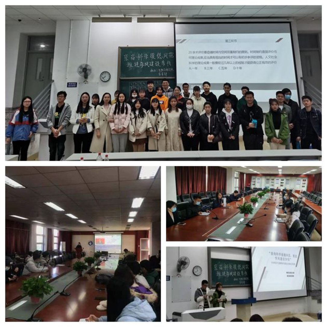 生物工程学院举办了新进教工科学道德与学风建设研讨会、“崇尚科学道德风范,推进学风建设步伐”趣味知识竞赛等特色活动。
