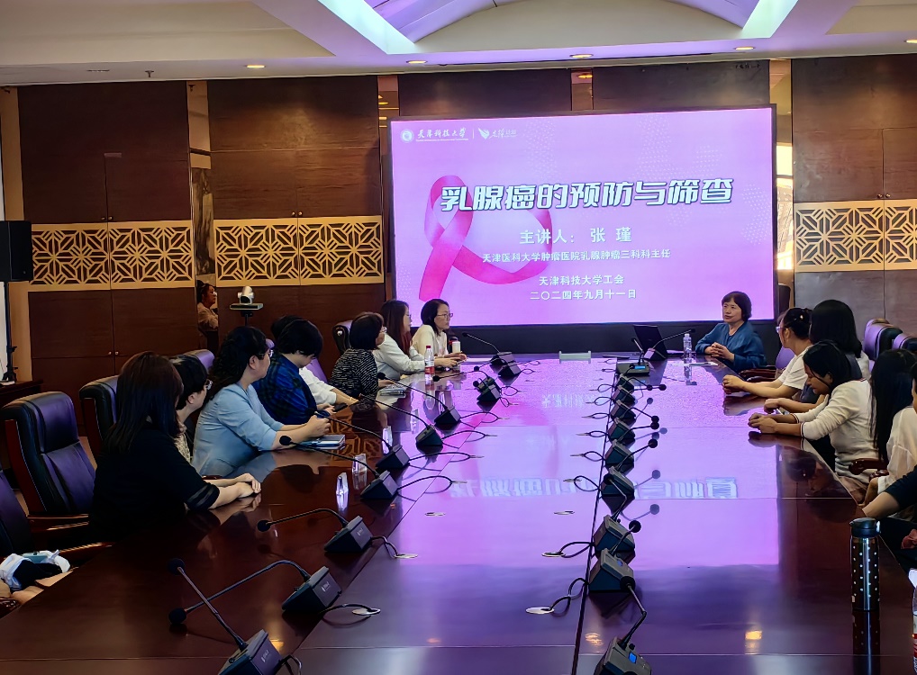 在庆祝全国第40个教师节之际,为进一步提高教职工的健康保健意识和自我保健能力,深入了解乳腺疾病的预防保健知识,校工会在滨海校区举办“关心关爱教职工健康讲座进校园”活动,邀请到中国天津乳腺癌防治研究中心常务副主任、天津医科大学肿瘤医院乳腺三科科主任、博士生导师张瑾教授和副主任医师刘艳博士,为我校60余名女教职工进行“乳腺癌筛查与早期诊断”的健康保健知识讲座和义诊活动。市纪委监委驻校纪检监察组组长李蓉应邀参加活动并讲话。