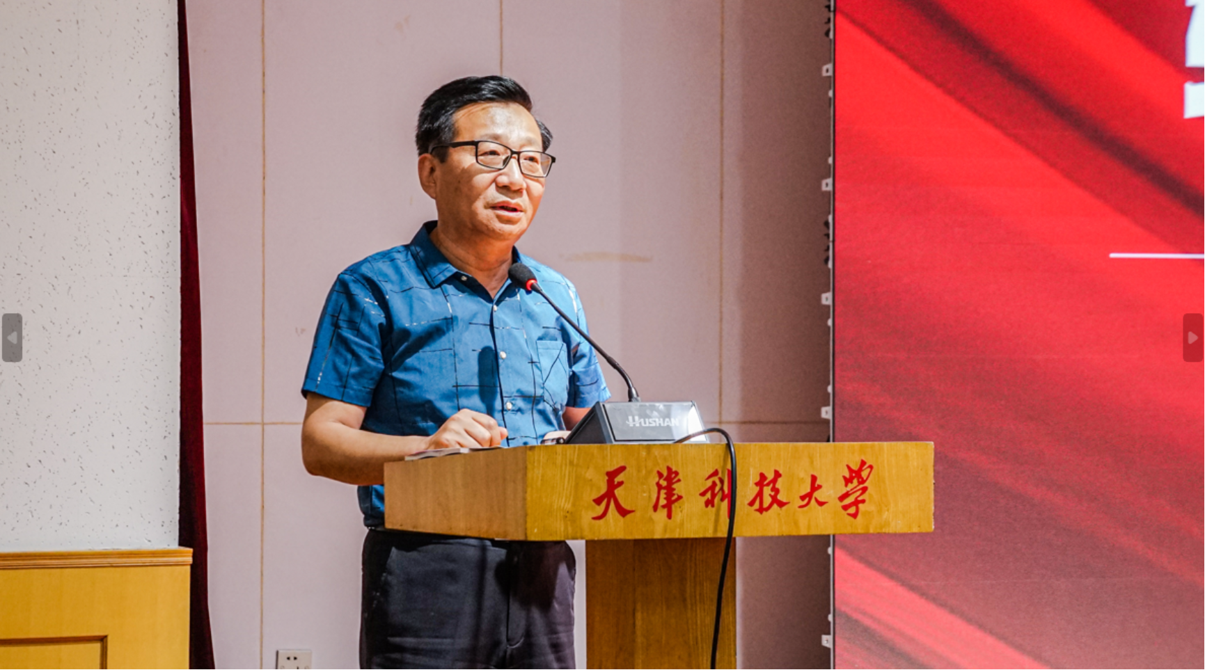 相信光,成为光。会上,全体到场人员共同观看了本届大赛宣传视频《相信光,成为光》,展现了天津科技大学辅导员的精神风貌。