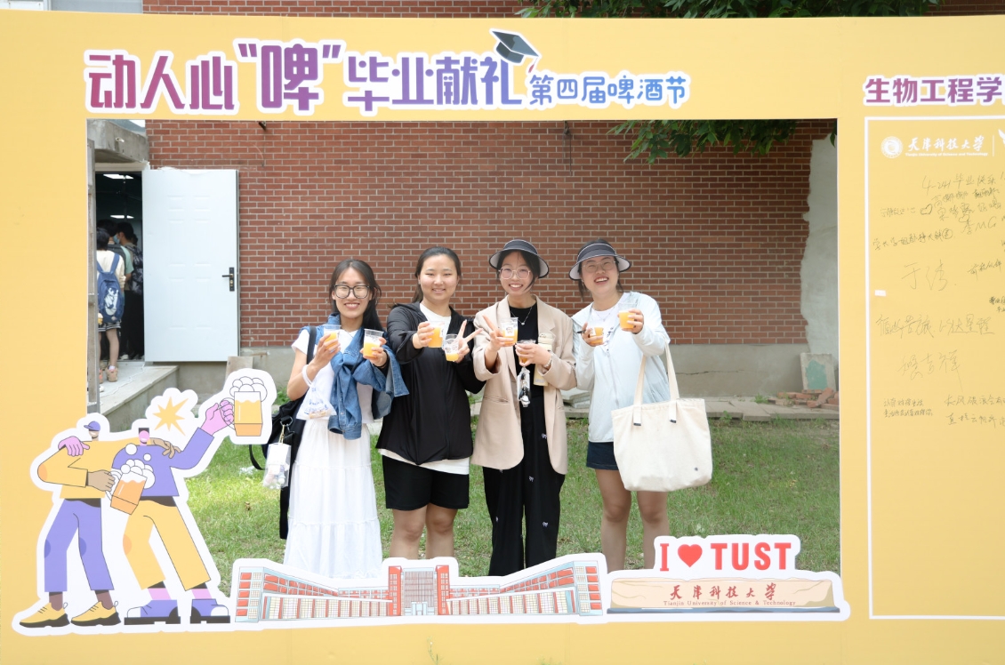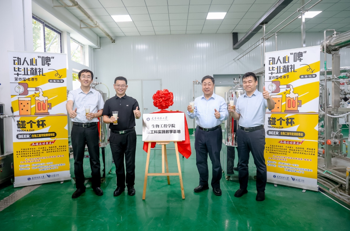 6月5日,第四届天津科技大学“动人心啤毕业献礼”啤酒节系列活动如期举行,市教委科研处处长杨明海、天津科技大学党委常委、副校长高发明共同为我校生物工程学院“新工科实践教学基地”揭牌并开启本届啤酒节序幕。随着生物工程学院党委书记举杯祝福同学们“前程似锦”的话音落下,早已排起长龙的师生依次用杯子接上一杯刚刚酿出的鲜啤,尽享清爽醇香的佳酿。请全校师生喝啤酒,品佳酿,这一“酒”气冲天、独具特色的毕业季活动能够持续举办并备受欢迎,源自我校生物工程学院强劲的专业实力和扎实的育人成效。