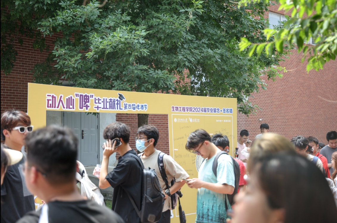 生物工程学院相关负责同志介绍,啤酒节活动是学院坚持了4年的品牌特色活动。此次师生们喝的啤酒由学院2024届218名全体毕业生历时3个月酿造而成,从起初筛选麦芽,中间加啤酒花,后面的发酵等所有环节都由全体毕业生亲自完成。同时,整个环节还有啤酒厂的工程师全程把关监督,确保生产质量合格、干净卫生。最终,这些酒体透亮、泡沫丰富、口感醇厚、特色鲜明的啤酒,既是学院毕业生的毕业实习作品,也是学院以啤酒节的形式送给全校师生的一份特别的“毕业季礼物”。