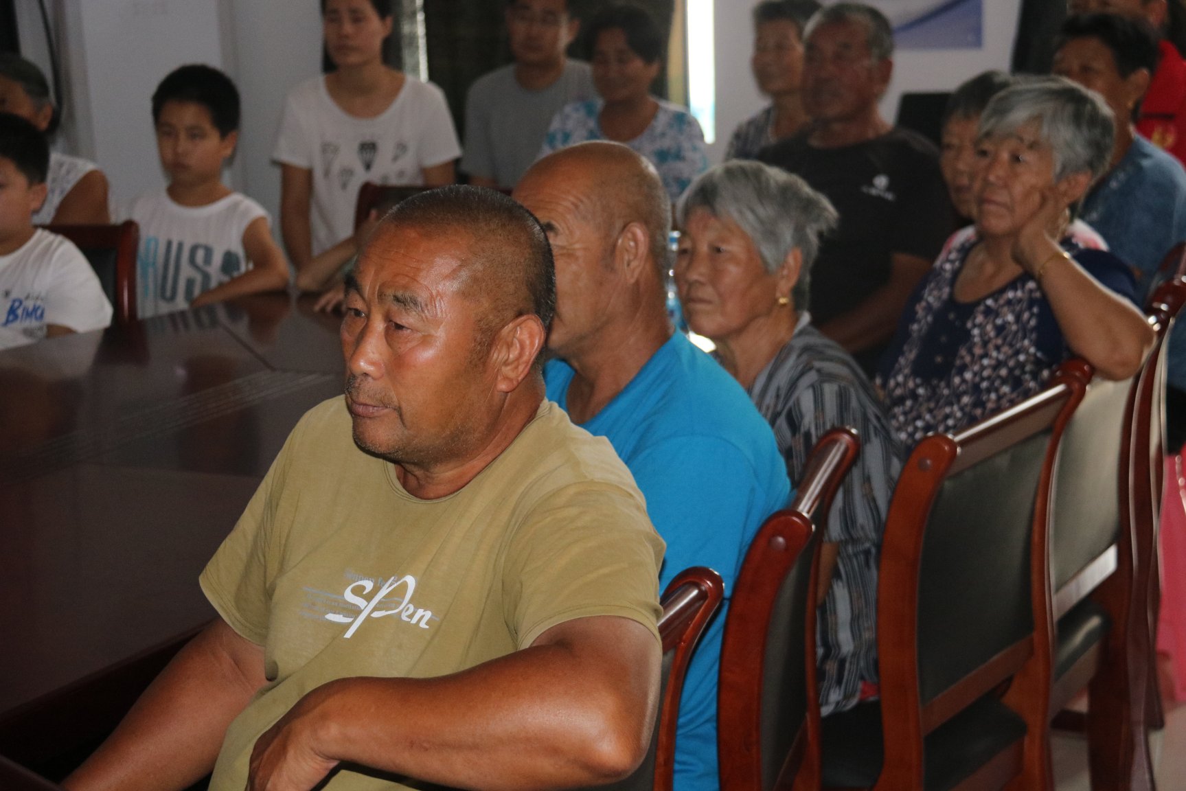 图为鲁家铺村老人孩子观看艺术设计学院师生集体创作的长征主题动画短片