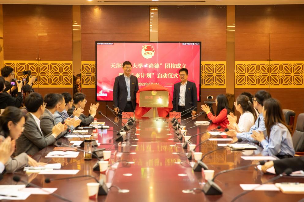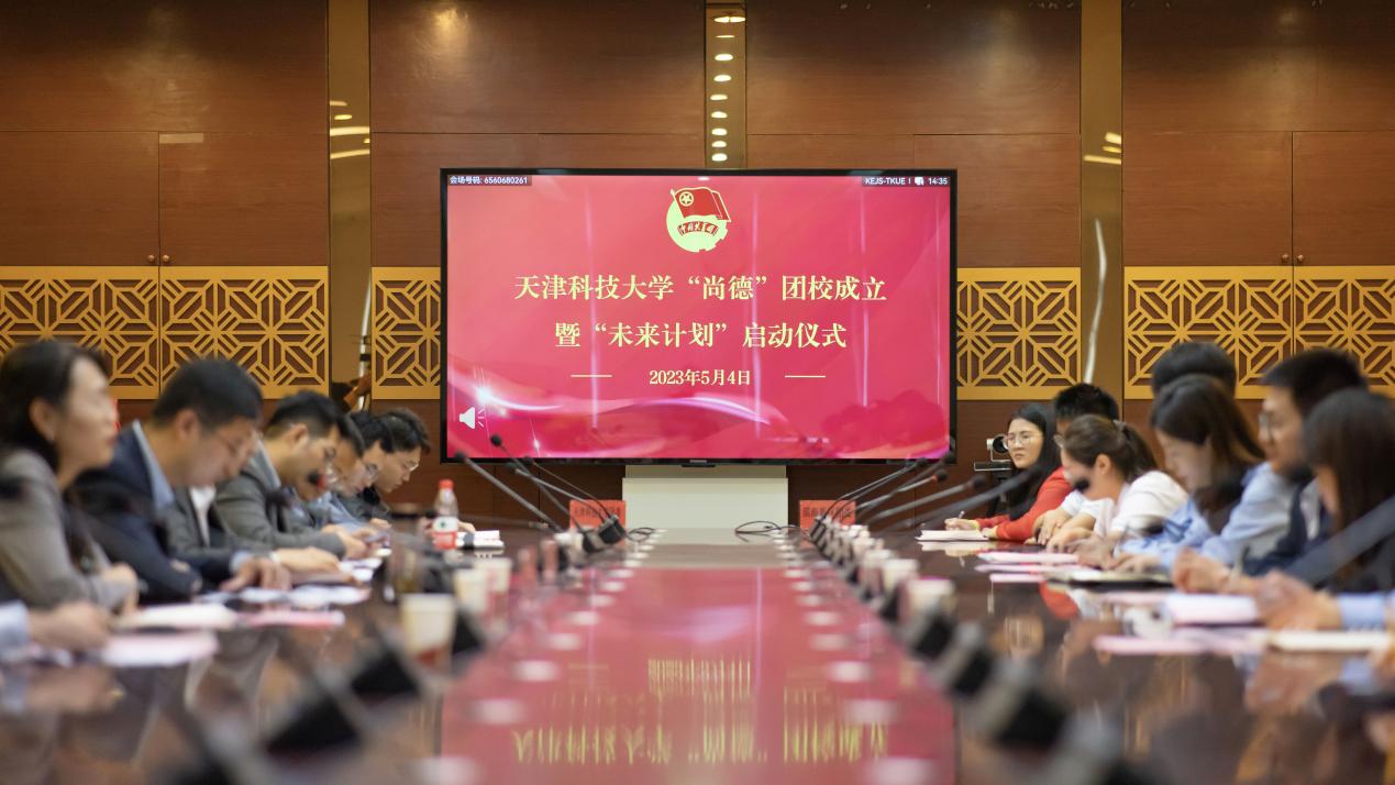 为深入学习宣传贯彻习近平新时代中国特色社会主义思想和党的二十大精神,按照市委、市政府“十项行动”工作部署,聚焦实施科教兴市人才强市行动、实施滨海新区高质量发展示范引领行动,天津科技大学团委与滨海新区团委持续深化校地合作,于五四青年节当天,共同举办“尚德”团校成立暨“未来计划”启动仪式。滨海新区团委书记詹越、滨海新区税务局党建科科长段雨曦、校团委书记马臣,校地双方有关负责同志,各基层团委书记、青马工程学员、研究生支教团成员、青年学生代表参加本次活动。