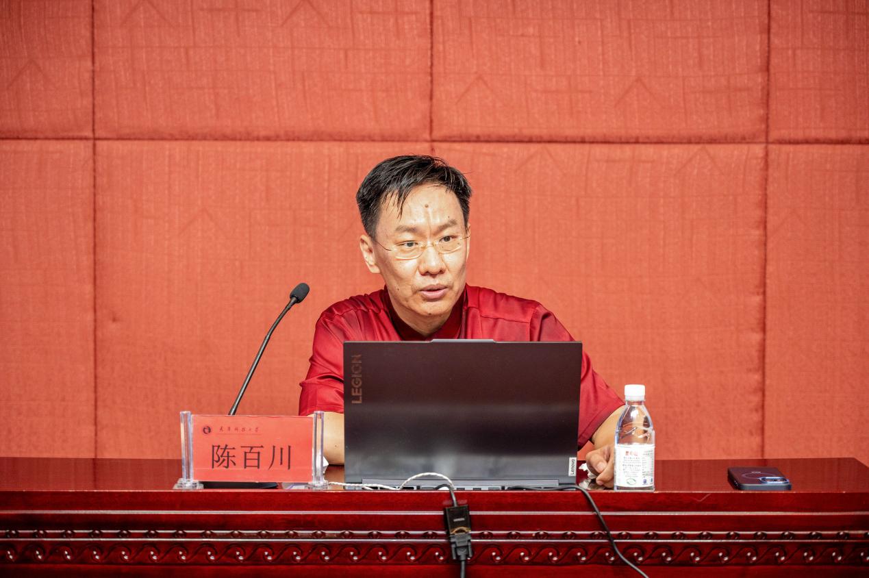 为深入学习宣传贯彻习近平文化思想,提升高校思想政治教育和文化教育水平,涵养我校“先锋文化”,6月21日,我校在河西校区主楼C区报告厅举办了第80期“博学讲堂”:“千文送千校”中华优秀传统文化宣讲活动。活动由党委宣传部、学工部主办,电子信息与自动化学院、“信”火相传-辅导员科教思政工作室承办。活动邀请到人社部全国人才中心党支部书记、国学教育家、书法家陈百川老师。党委宣传部、电子信息与自动化学院负责同志,教师代表、学生代表共计百余人参加活动。