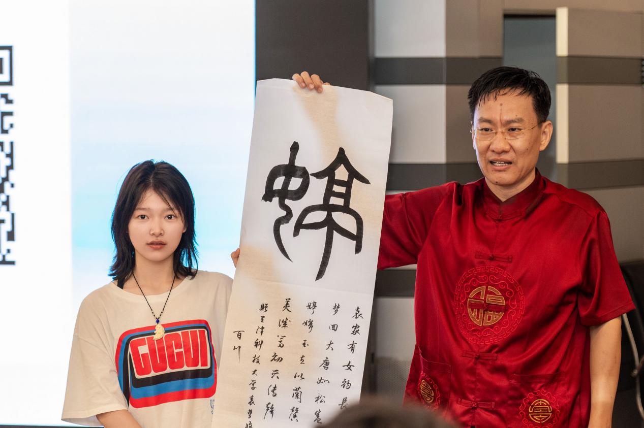 活动接近尾声,陈百川老师为师生们现场创作、书写、展示并赠送了书法作品,认真分享并阐释了书法作品中所蕴含的文化含义。在场师生积极踊跃与陈百川老师交流互动,掌声不断、气氛热烈。