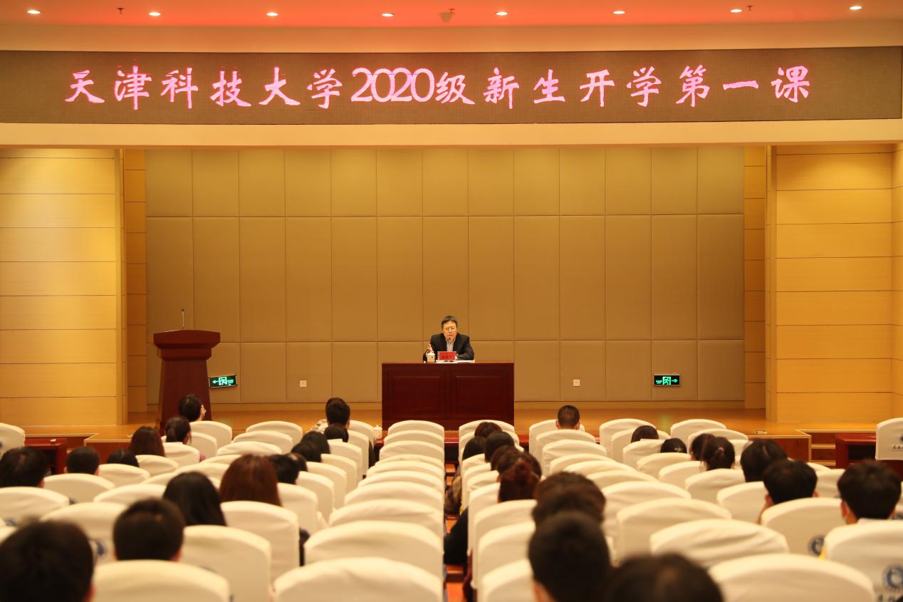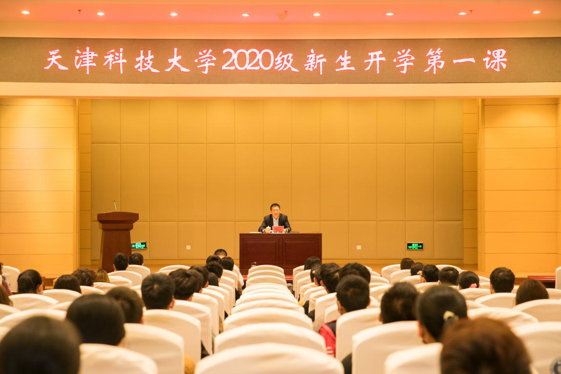 10月8日、9日,校党委书记韩金玉,党委副书记、校长路福平在滨海校区逸夫楼(河西校区C区报告厅同步视频)分别以《重温改革开放历史 勇担青年历史使命》《学“四史” 践初心迎百年担使命——学思践悟助成长砥砺奋进新时代》为题主讲开学第一课。500余名2020级新生代表聆听了精彩讲课。党委办公室(校长办公室)、学工部主要负责同志、各学院党委副书记、辅导员参加活动。党委常委、宣传部部长张春艳主持报告会。
