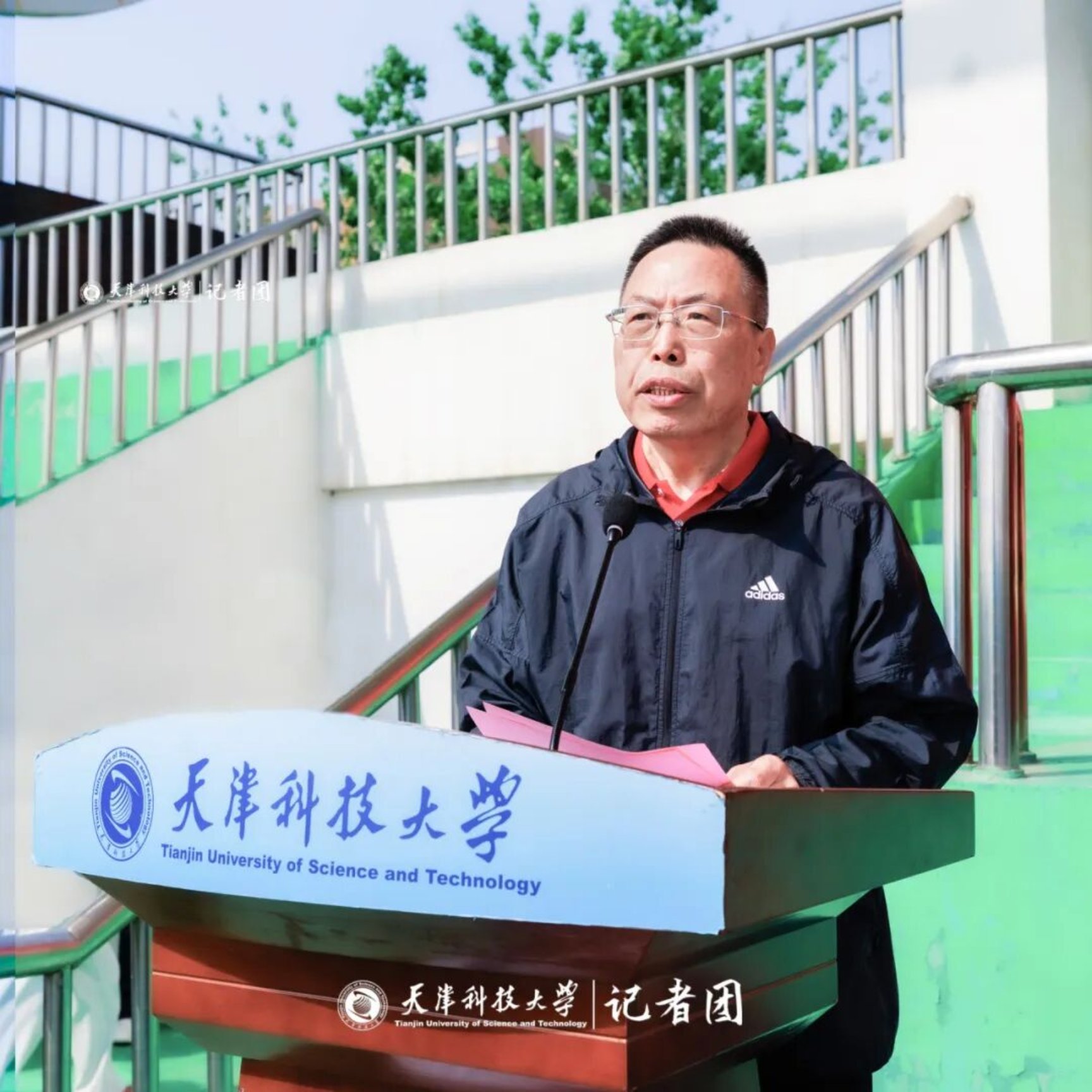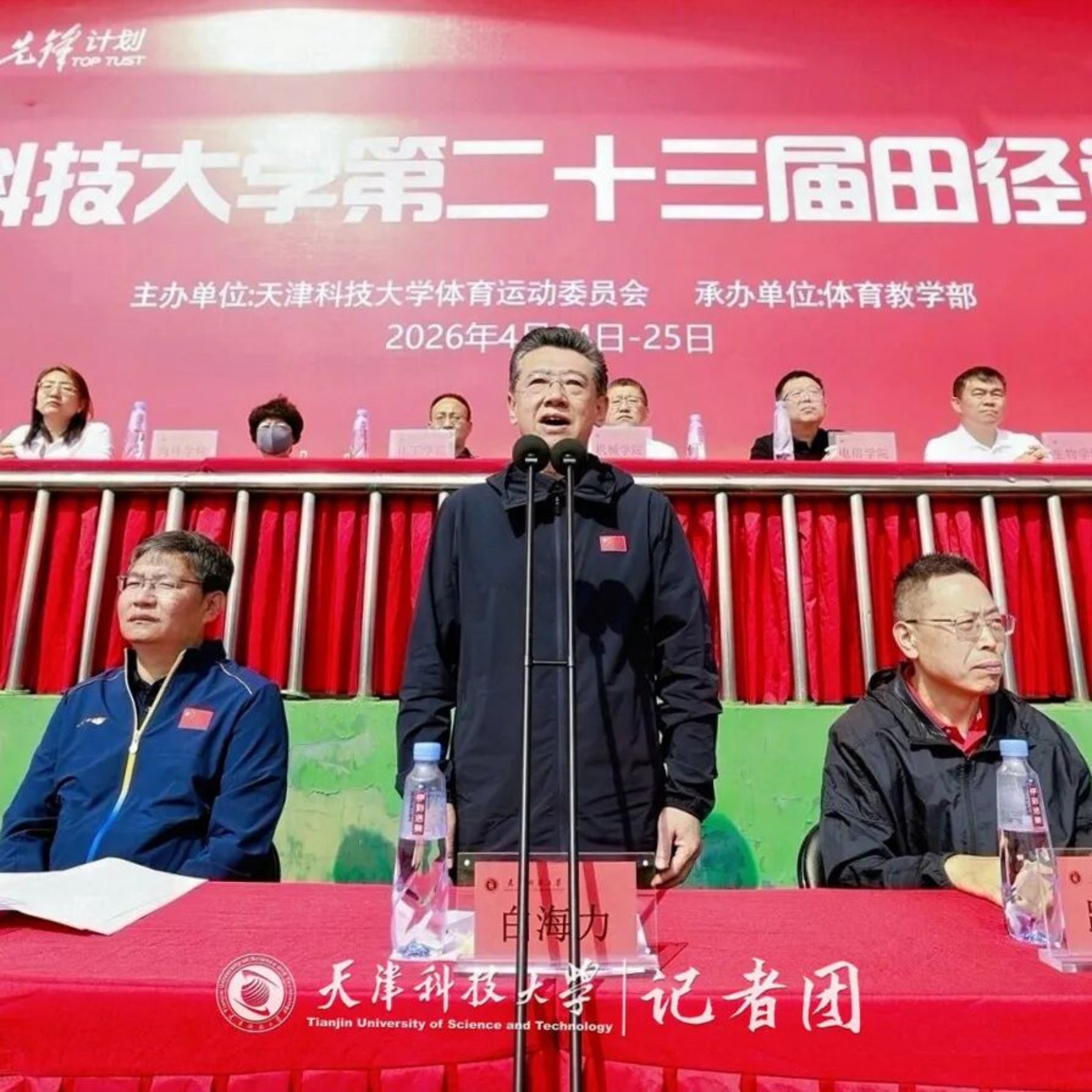 白海力郑重宣布:天津科技大学第二十三届田径运动会正式开始!现场氛围热烈浓厚,伴着阵阵掌声与喝彩,为期两天的运动会顺利启幕。
