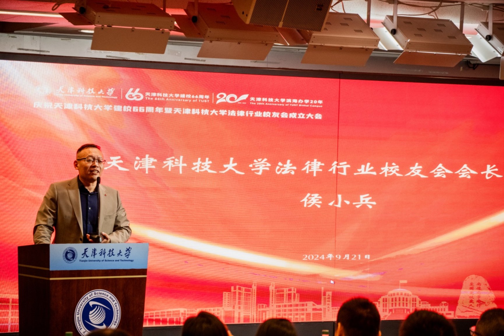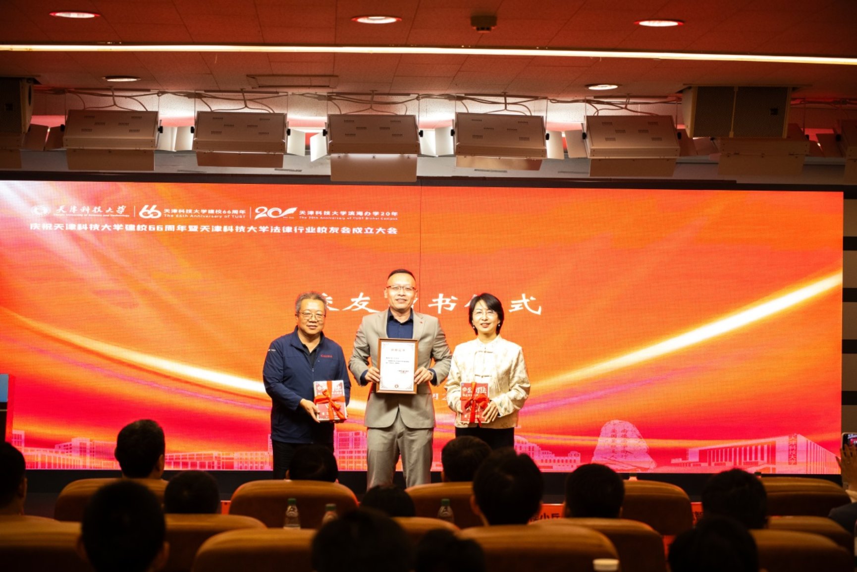 为深入贯彻习近平法治思想和全面推进依法治国、依法治校的重要举措,广泛团结、凝聚校友,打造校友沟通服务的重要平台,发挥好桥梁纽带作用,促进产教融合、校企合作、协同育人。9月21日,庆祝天津科技大学建校66周年暨天津科技大学法律行业校友会成立大会在河西校区C区报告厅隆重举行。