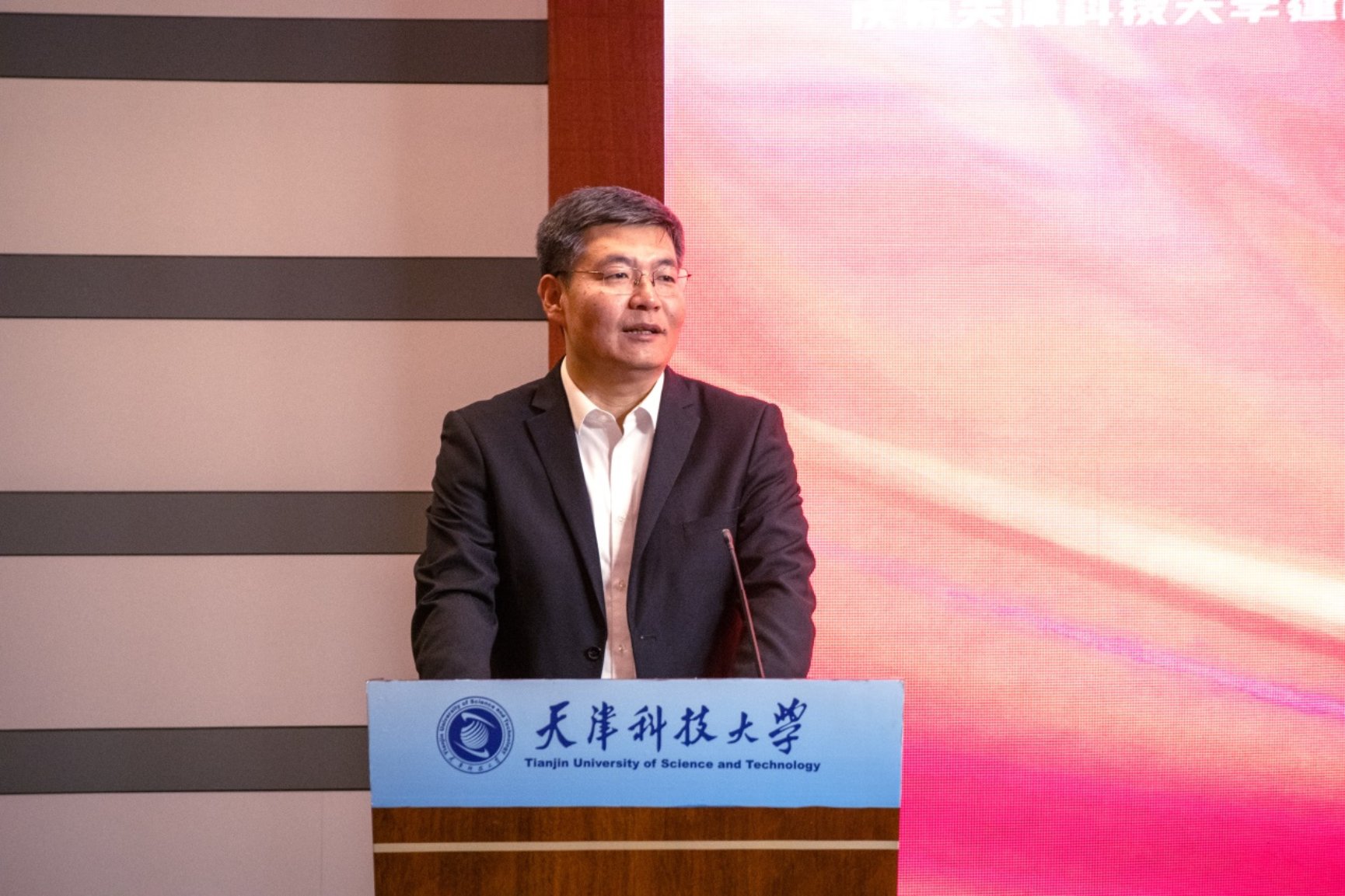 贾启君在讲话中强调科大66年的发展凝聚着包括校友在内的所有科大人的智慧力量,校友是科大最靓丽的名片,是科大最为宝贵的财富,是科大发展最可依靠的力量。一代代科大校友秉承“坚持拓展轻工特色,精心培育行业中坚,矢志服务国计民生”的办学传统,弘扬校训精神,在各行各业,各个领域辛勤耕耘,施展才华,创造业绩。天津科技大学法律行业校友会的成立,是学校深入贯彻习近平法治思想和全面推进依法治国、依法治校的重要举措,是广泛团结、凝聚校友,加强校友沟通的重要平台,是产教融合、校企合作、协同育人的重要尝试。希望校友会发挥好桥梁纽带作用,积极联络校友、悉心服务校友,不断加强校友之间、校友与母校之间的联系,激发校友活力、促进合作发展,着力打造母校与校友发展共同体。希望天津科技大学法律行业校友会成为广大校友的精神家园,凝聚广大校友永葆母校情怀,继承和发扬科大人品质,齐心协力助推学校事业蓬勃发展,以实际行动为母校增光添彩。