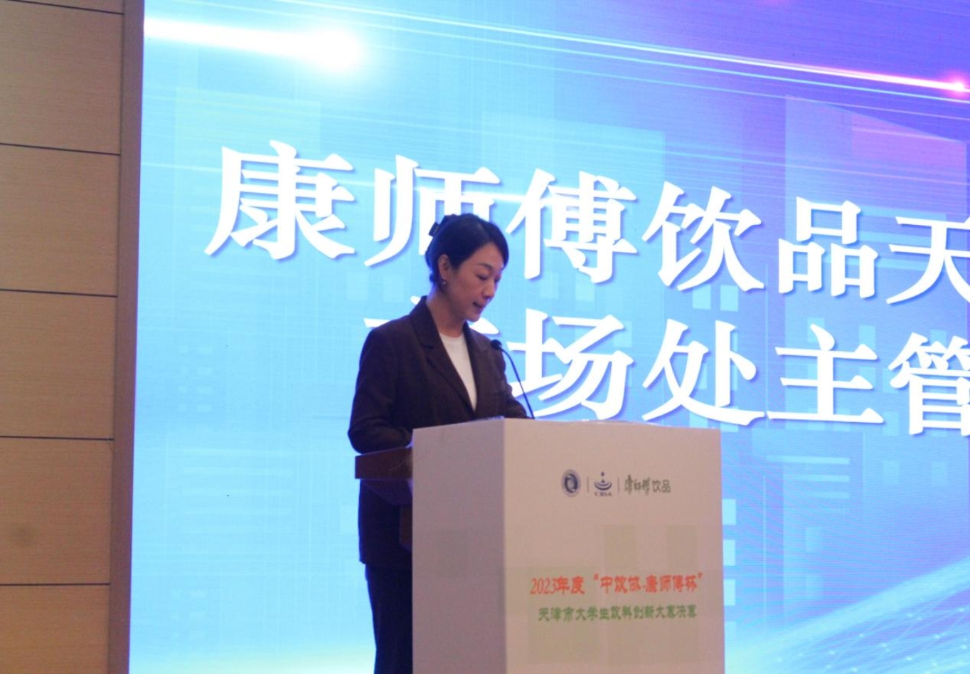 赵彦代表康师傅控股有限公司对协会、学校在举办大赛中的辛苦付出表示感谢,她表示康师傅公司长期以来一直致力于饮品创新,希望通过大赛这个平台吸引更多的青年大学生投身饮料行业的创新创造,力争涌现出一大批科技含量高、市场潜力大、社会效益好的优质项目,为中国饮料行业发展作出贡献。