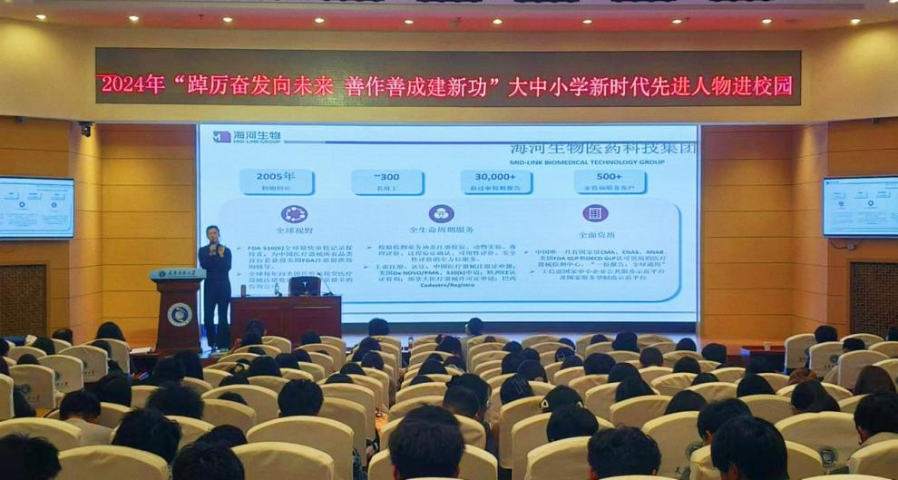 本次宣讲邀请到天津海河生物医药科技集团创始人、董事长,天津市滨海新区第四届政协委员、天津市三八红旗手、全国巾帼建功标兵、全国归侨侨眷先进个人、天津市“111企业家工程”新兴企业家、天津市创业英才成长专项入选专家洪晓鸣女士主讲,校党委学工部、生物工程学院相关负责同志及各学院学生代表230余人参加。