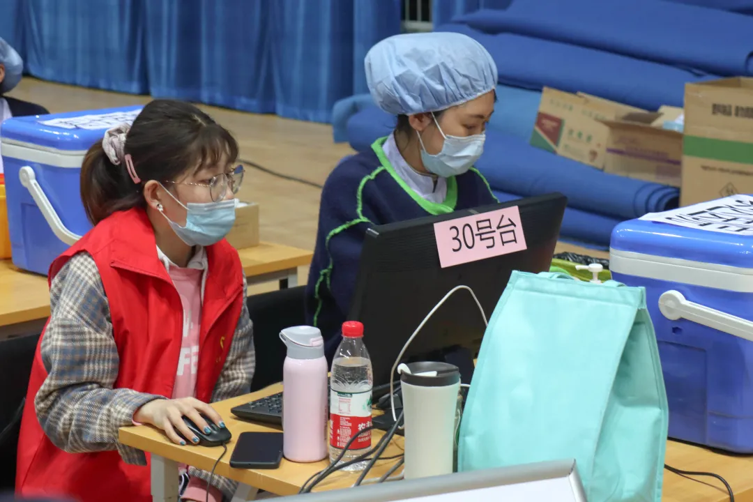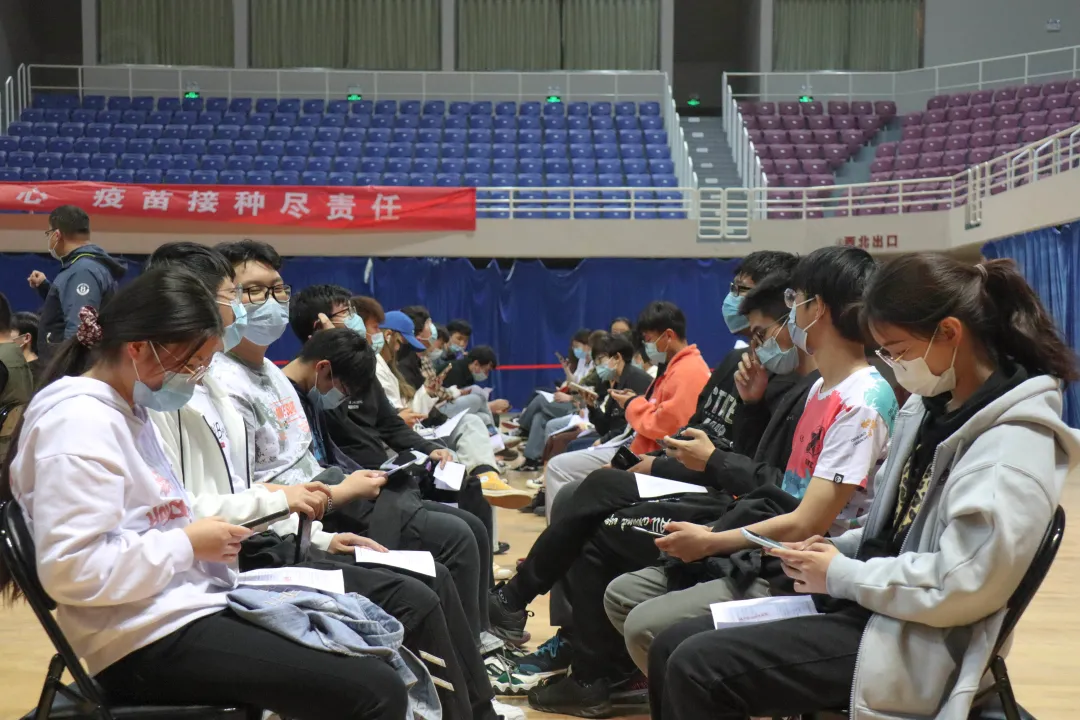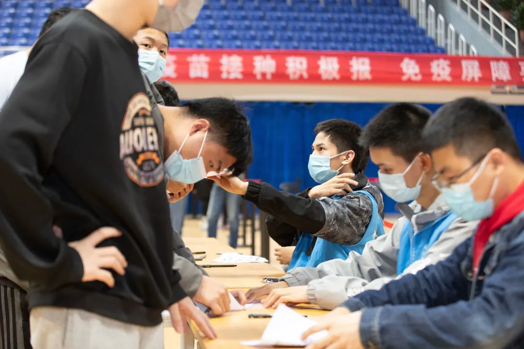 学生志愿者们积极参与此次工作,前期做好疫苗接种宣传工作,后期做好疫苗接种现场统筹工作,在充分调动广大学生对接种新冠疫苗的积极性以及维护现场工作秩序等方面贡献力量。