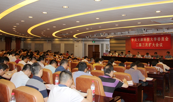 8月27日下午,学校在河西校区主楼C区报告厅召开中共天津科技大学委员会二届三次全委(扩大)会议,传达落实市委十届七次全会精神,分析当前面临的形势,总结上半年工作,研究部署下半年工作。校党委书记李旭炎、校长王硕做重要讲话。全体校党委委员出席会议。全体中层以上干部参加会议。校党委副书记、副校长王学魁主持会议。