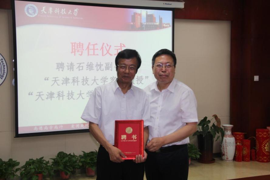 会上,路福平为石维忱颁发了天津科技大学客座教授及兼职研究生导师聘书。