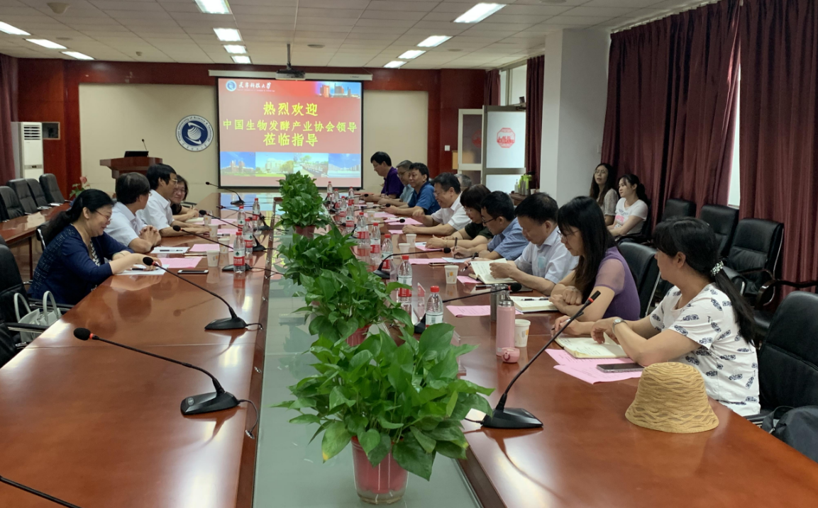 近日,中国轻工业联合会兼职副会长、中国生物发酵产业协会名誉理事长石维忱,中国轻工业联合会副秘书长、中国生物发酵产业协会理事长于学军,中国生物发酵产业协会副理事长兼秘书长王洁一行来我校指导交流。我校党委副书记、校长路福平,研究生院、生物工程学院、天津工业生物技术研究所和教师代表参加座谈交流,会议由生物工程学院院长罗学刚主持。