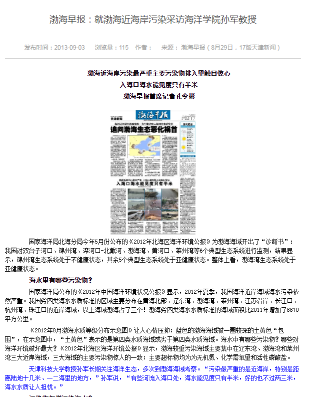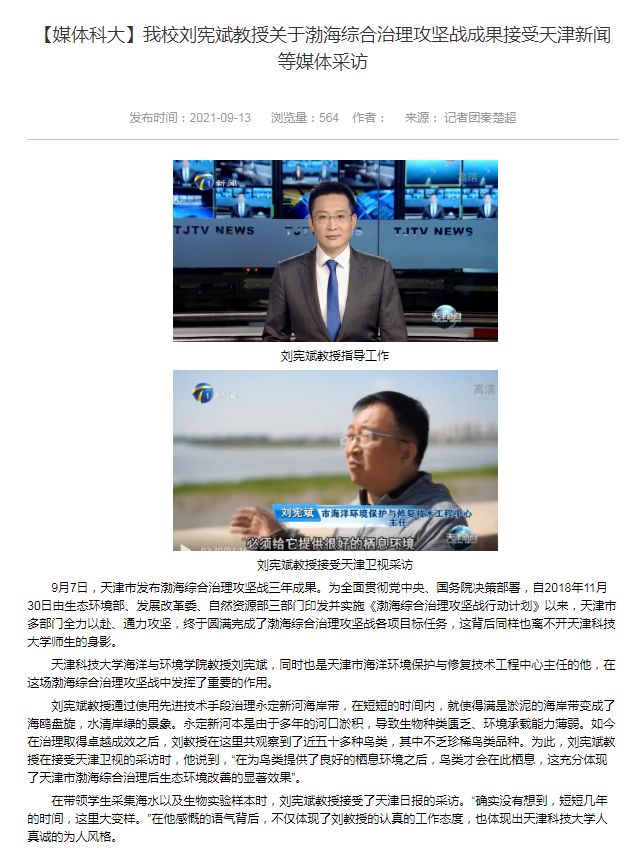 刘宪斌教授关于渤海综合治理攻坚战成果接受天津新闻等媒体采访