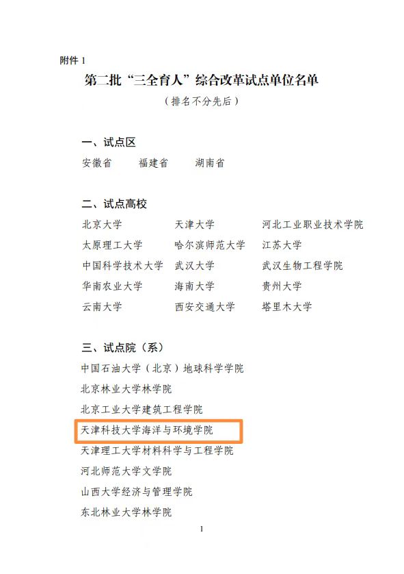 “三全育人”工作成效显著。“三全育人”工作取得新实效。2019年1月,海洋与环境学院“基于‘本科生导师制’的‘三全育人’体系建设”项目获批教育部第二批“三全育人”综合改革试点院(系)。2021年12月顺利完成验收。学院“三全育人”的做法被《中国教育报》等媒体报道。