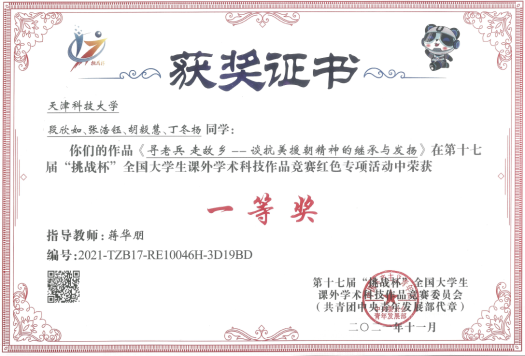 学风建设取得新突破。190542班荣获“普通高等学校2020-2021学年度天津市先进学生集体荣誉称号”,学院团委获“天津市五四红旗团委”荣誉称号。学生获第十七届“挑战杯”全国大学生课外学术科技作品竞赛红色专项活动一等奖1项、三等奖1项,实现了学校在“挑战杯”红色专项赛国家级一等奖方面从“0到1”的突破。
