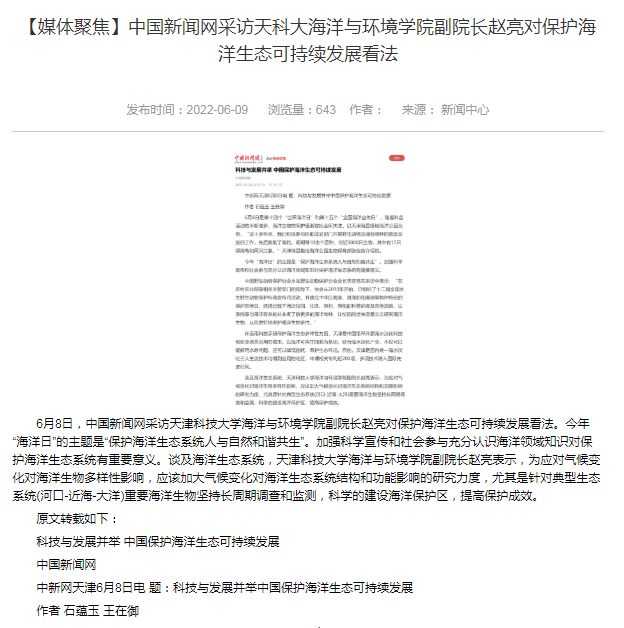 中国新闻网采访赵亮教授对保护海洋生态可持续发展看法