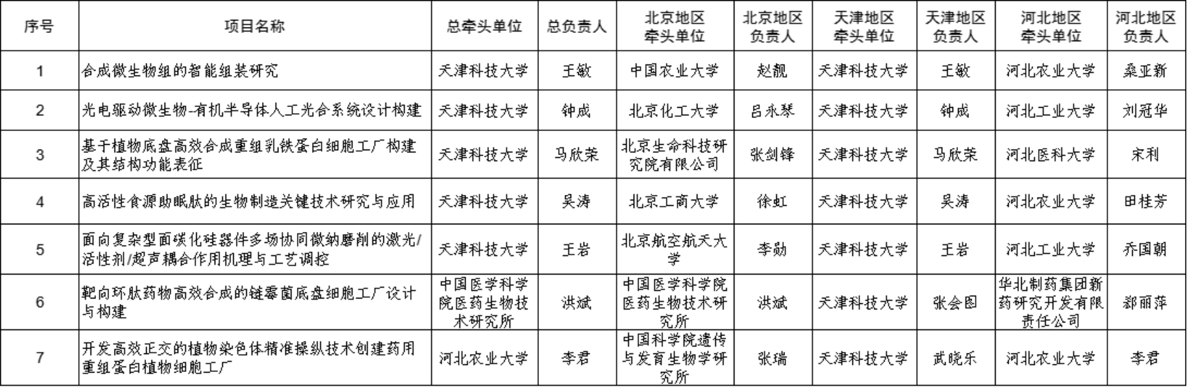 我校获批的项目聚焦合成生物制造、高端仪器设备和工业母机等京津冀区域发展核心领域,联合北京、河北两地高校、科研院所及企业共同申报。立项结果充分体现了我校基础研究与区域战略需求的高度契合,以及跨区域协作攻关的硬实力。