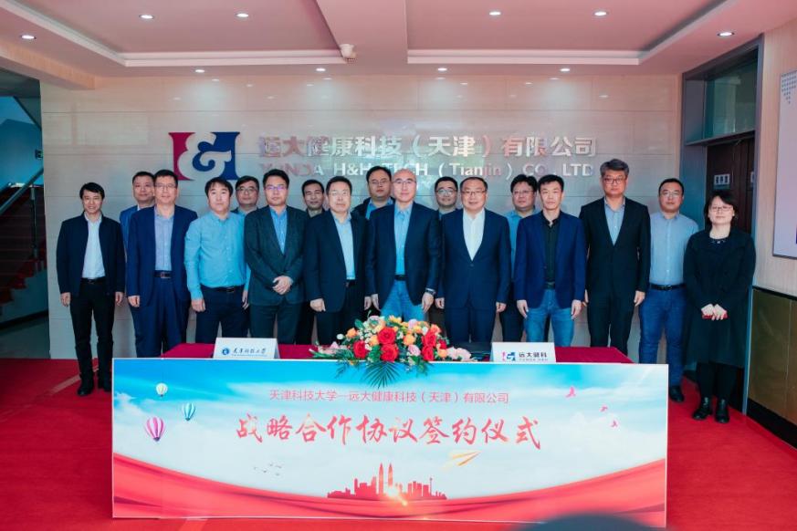 魏恩雨代表远大健康公司对天津科技大学和静海区一行表示欢迎。他表示,天津科技大学是天津市重点建设高校,更是公司创新发展道路上的同行者和好伙伴。希望双方抓住发展机遇,共同构建合作发展的新平台、新机制,努力打造国内一流的创新研发中心和有利于高素质应用型人才培养的实践教学基地,进一步深化校企合作,携手服务国家战略和经济社会发展,实现校企互利共赢。