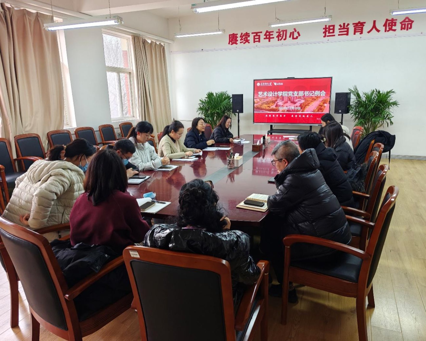 12月19日,艺术设计学院党委组织召开党支部书记工作例会,围绕进一步深化主题党日活动开展学习交流与工作部署。会议由学院党委副书记范爱春主持,学院党委书记朱丽丽、纪委书记包慧珂、各党支部书记及组织员参加会议。