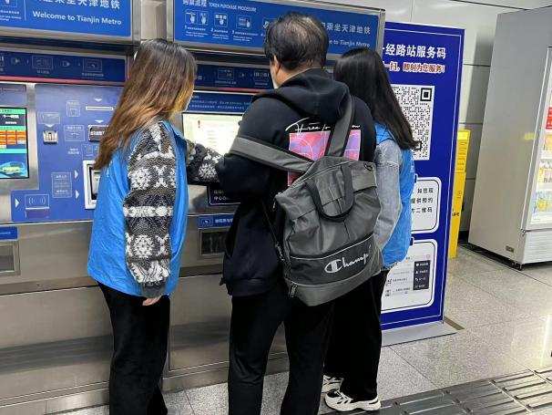 在地铁站,志愿者们身穿统一的蓝色志愿者马甲,精神饱满地投入到各自的岗位上,一部分志愿者在自动售票机旁,为不熟悉购票流程的乘客提供购票指导;另一部分志愿者在地铁站入口处,为乘客提供导乘服务,耐心解答乘客的问题……志愿者们始终面带微笑,热情、耐心、细致的态度,受到了乘客们的高度赞扬,乘客们纷纷表示志愿者们的举动让他们在寒冷的冬季感到了温暖。