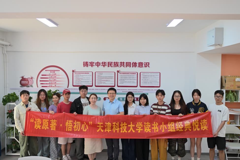 为深入学习贯彻习近平新时代中国特色社会主义思想,铸牢中华民族共同体意识,充分发挥“先锋文化”在“以文启智、以文润心、以文兴学、以文育人”中的引领作用。中国高等教育学会马克思主义研究分会2024年度“马克思主义经典著作研读”资助计划支持小组——天津科技大学“攀登先锋”读书小组,于5月28日联合红石榴协会共同开展了“读原著·悟初心”经典悦读读书活动。