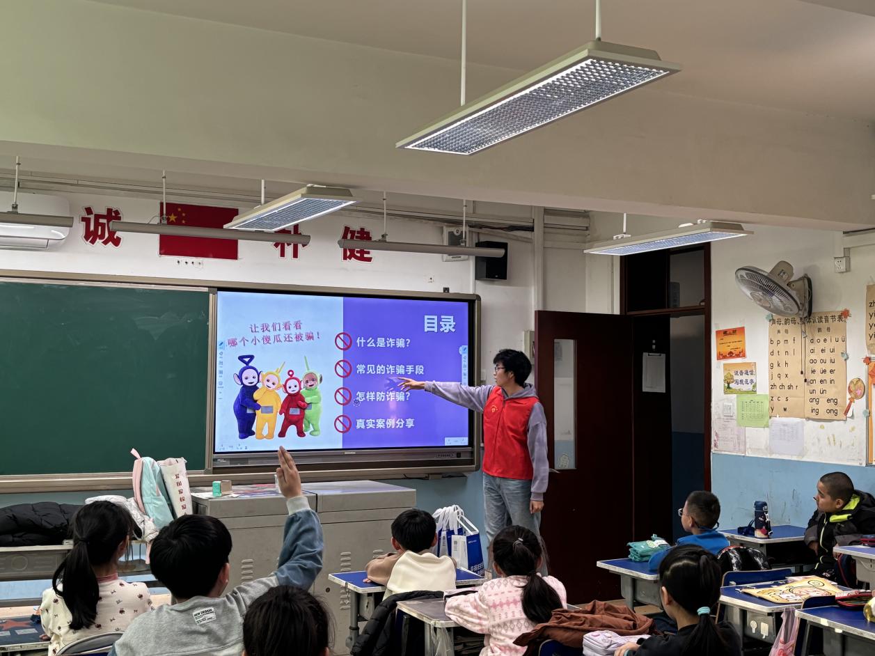 为进一步提高小学生反电信诈骗的意识,提升识别与应对能力,营造校园安全氛围,实现“大手拉小手”共同培养社会责任感的目的。外国语学院星火讲师团于12月5日前往天津科技大学附属柳林小学开展了“预防电信诈骗”的主题宣讲活动。这场活动旨在通过知识的传播与互动,让小学生们深刻认识电信诈骗的危害,助力他们成为有防范意识的新时代少年。