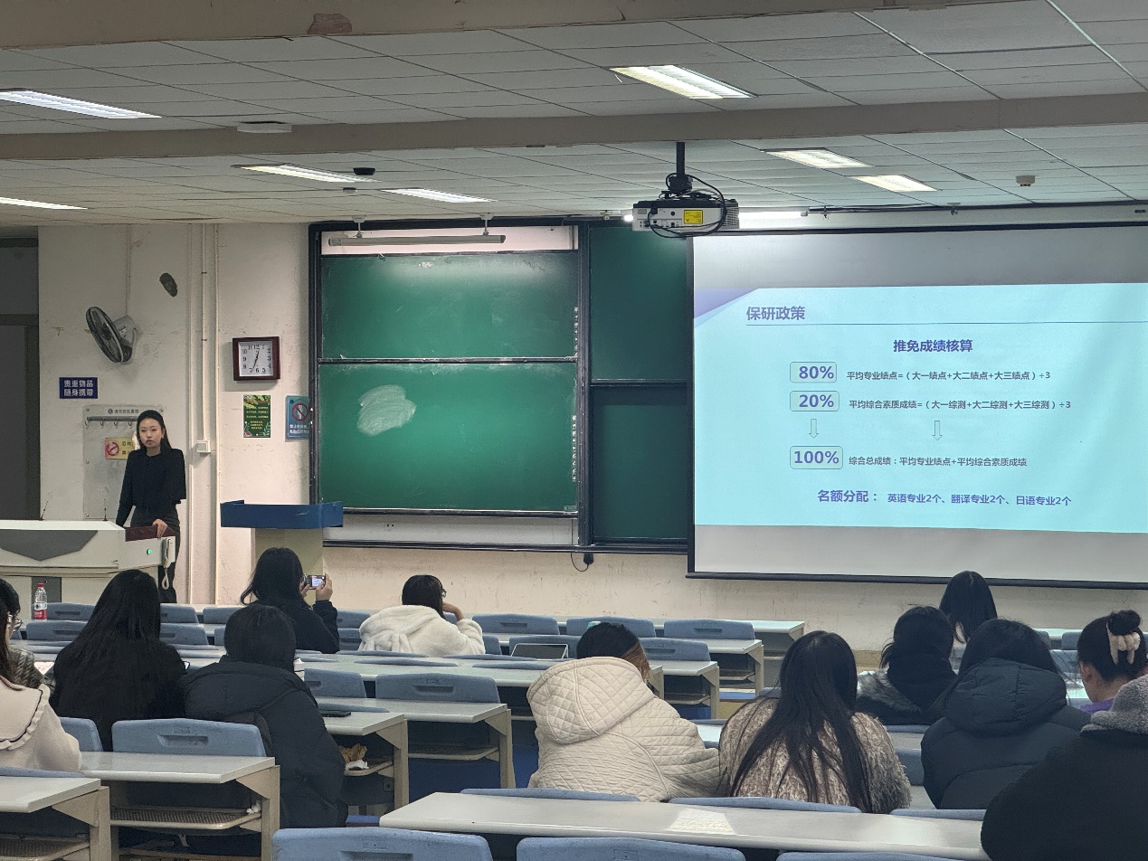 首先,杜奕霏和张涵围绕保研相关条件进行了详细的解读与讲解,为同学们未来的学习与保研之路指明了方向。在讲解过程中,她们不仅分享了保研的基本流程和注意事项,还通过互动环节耐心解答了同学们对保研的诸多疑问,消除了大家对这一重要过程的困惑与顾虑。