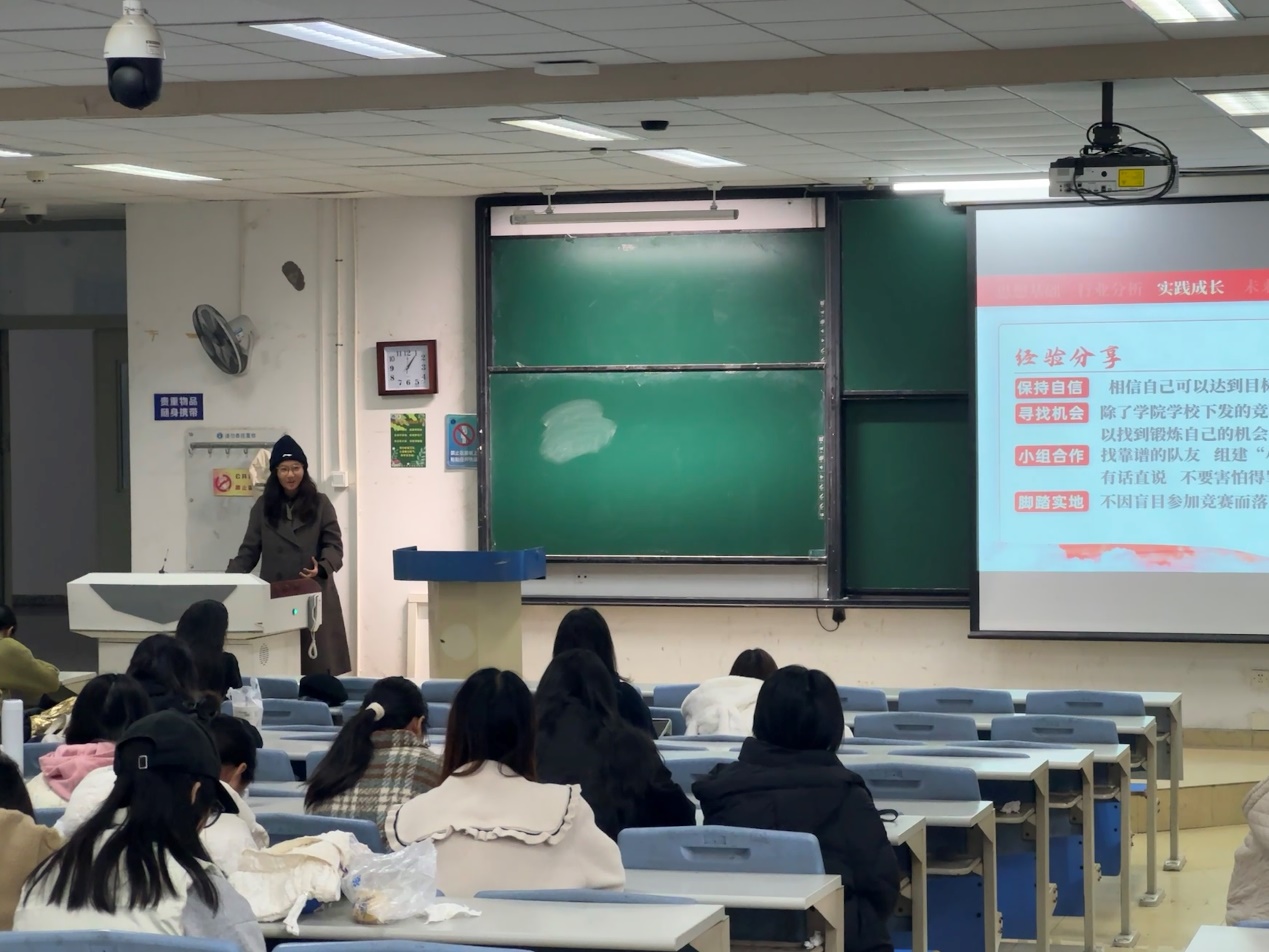 接着,郝嘉怡和刘杨柳青则聚焦于学科竞赛,分享了许多高价值的竞赛信息及相应的学习方法。她们结合自身的经历,生动阐述了学科竞赛的重要性以及参与竞赛所带来的成长与收获。通过实例,她们展示了如何将理论知识与实践相结合,提升自身的综合能力。同时,成员们鼓励同学们多参加专业竞赛,激励大家勇于挑战自我,积极参与。