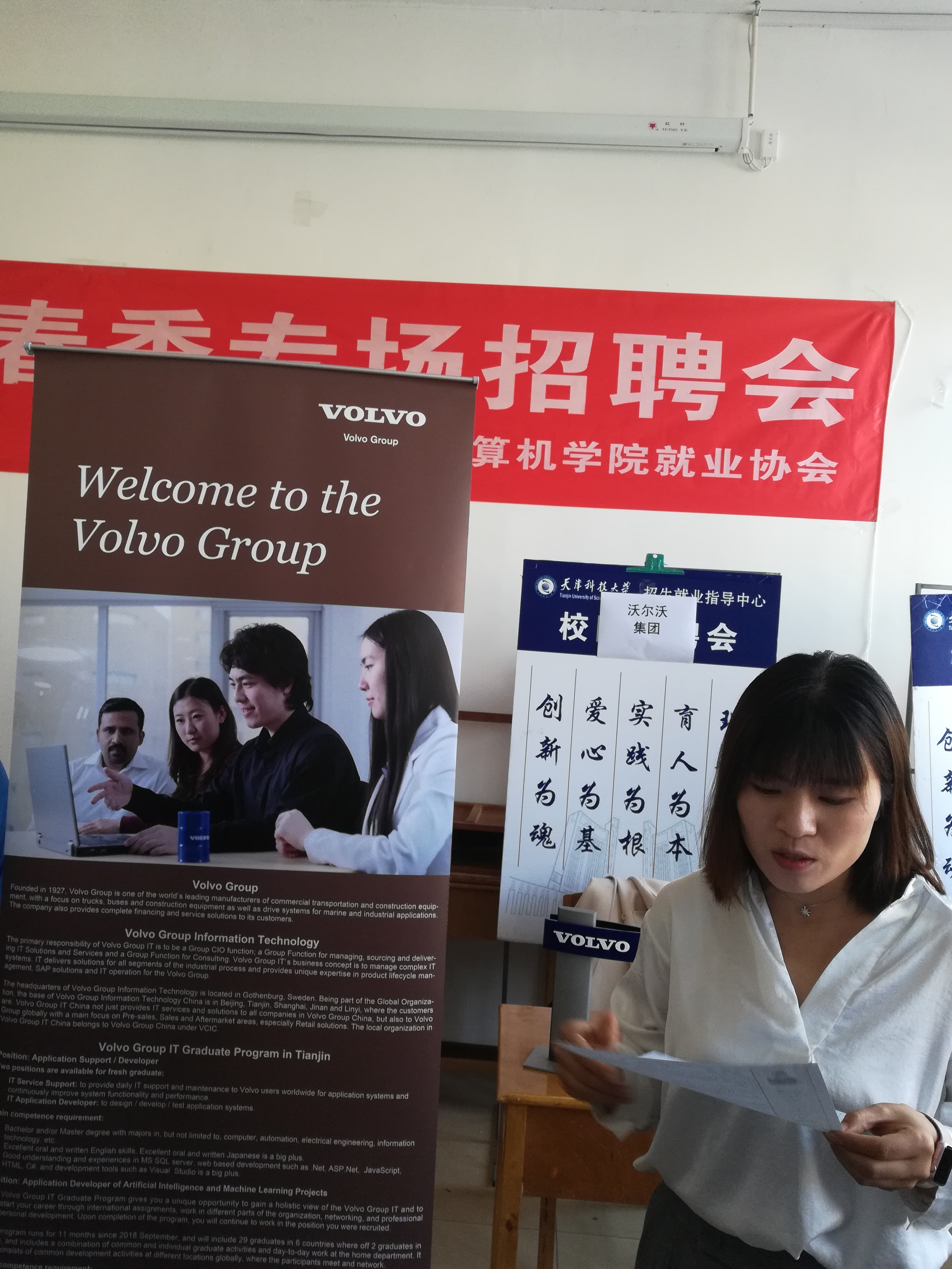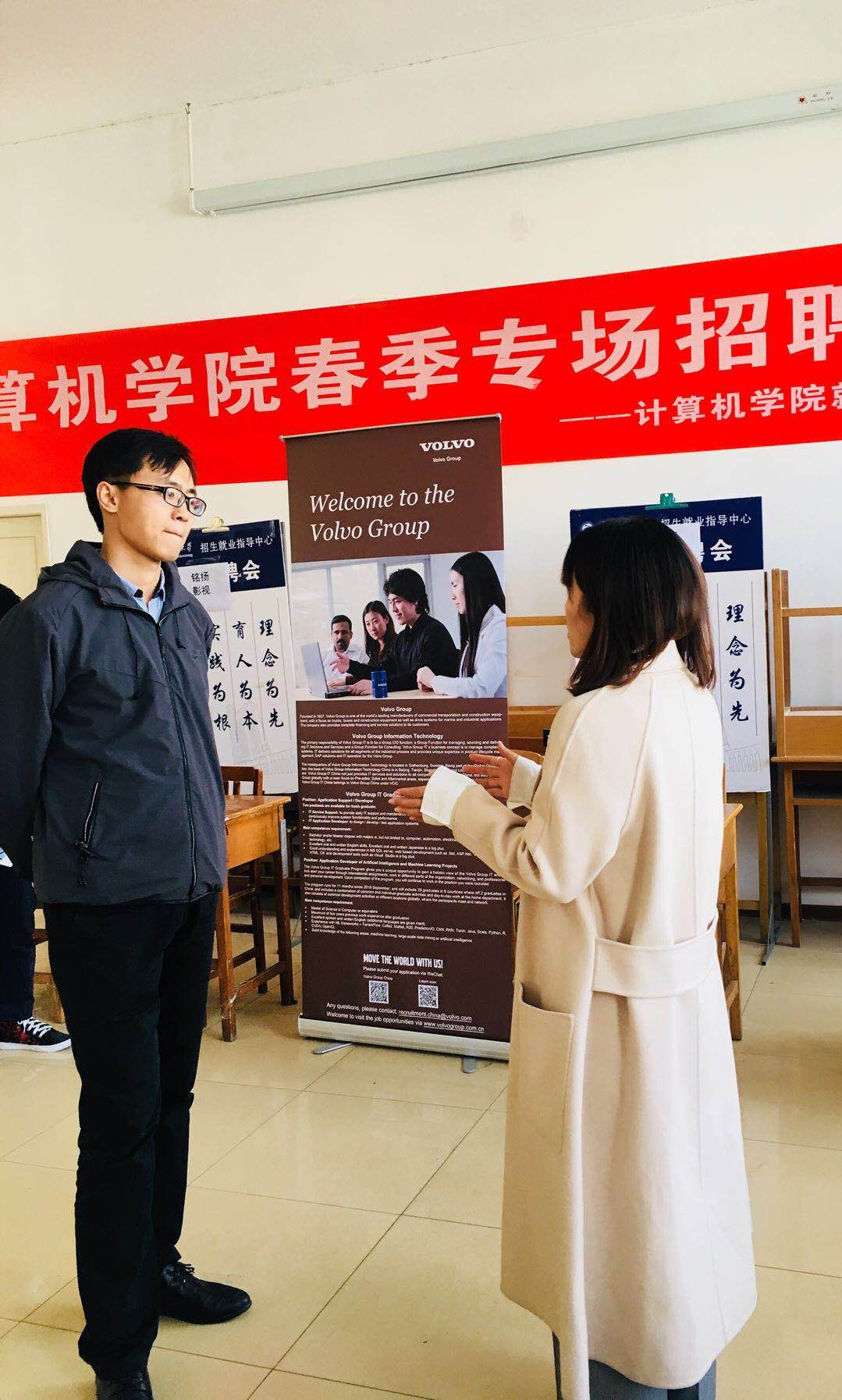 招聘会上,大四应届毕业生们纷纷手握个人简历,认真的观看各企业招聘宣传海报,寻找着自己心仪的企业,并有意识的向各企业招聘负责人询问该企业招收的人员所必备的能力、薪资待遇、工作地点等。对于此次招聘会,众多企业均表示希望吸纳专业知识扎实,能吃苦耐劳,踏实肯干,积极向上的应届毕业生,对此次招聘结果也表示满意。世界五百强沃尔沃公司的Echo女士表示,沃尔沃公司每年招聘的员工很多都是海外学成归来的人员,对于应届本科毕业招收相对较少,要求毕业生有较高的英语水平和扎实的专业基础。同时,Echo女士表示欢迎我院英语能力较强的大三学生能到沃尔沃天津分公司实习,希望能和学院有一定的合作。参加今天招聘会的毕业生们也表示,今天的招聘会对他们的求职给予了很大的帮助,意识到了自己的短板与长处对个人求职的影响。许多毕业生对自己心仪的公司投出了个人简历,期待着下一阶段的笔试和面试。