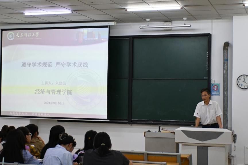 为树立研究生诚以立身,廉洁自律,恪守学术道德的价值观和道德观念,养成良好的行为习惯,经管学院于9月10日在河西校区主楼A-104召开2024级研究生学科专业、学术道德主题讲座,会议由研究生辅导员庞姝瑜主持,学院副院长朱建民主讲,全体2024级研究生及部分研究生代表参加会议。