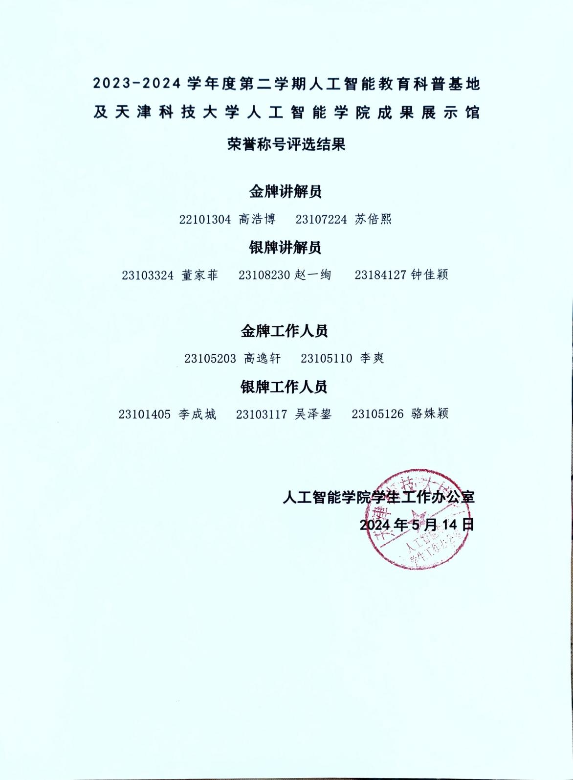 近日,人工智能教育科普基地及天津科技大学人工智能学院讲解员及工作人员专项技能评比圆满落幕。