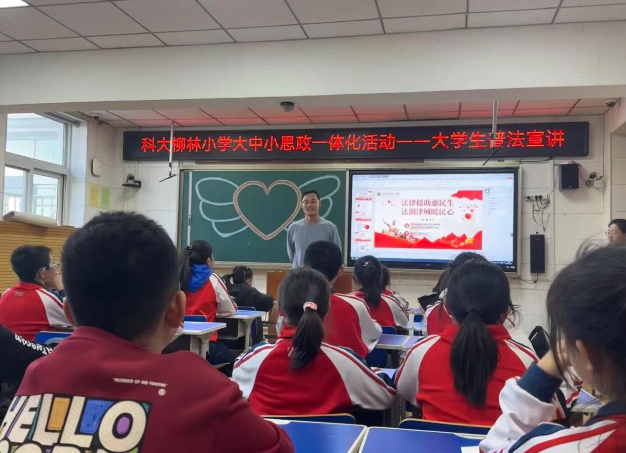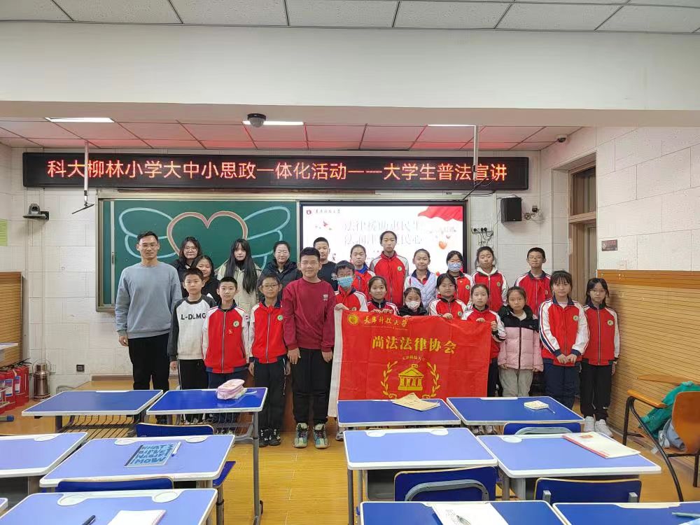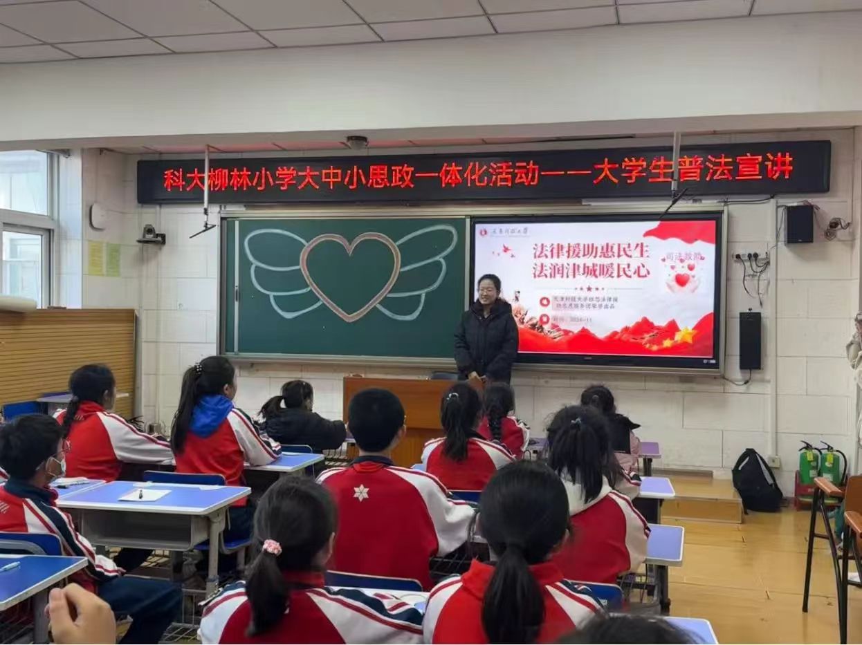 在深入贯彻落实党的二十届三中全会精神,积极践行习近平总书记视察天津讲话要义的时代浪潮,我校紧扣国家法治教育脉搏,以推动大中小思政一体化为重要抓手,将助力未成年人筑牢法治观念,提升法律素养视为己任,矢志不渝地投身于未成年人法治培育当中。天津科技大学文法学院以法之名,为援而生——青春法援实践队的同学于11月27日走进科大柳林小学,开展了一场生动有趣的校园普法宣传活动。