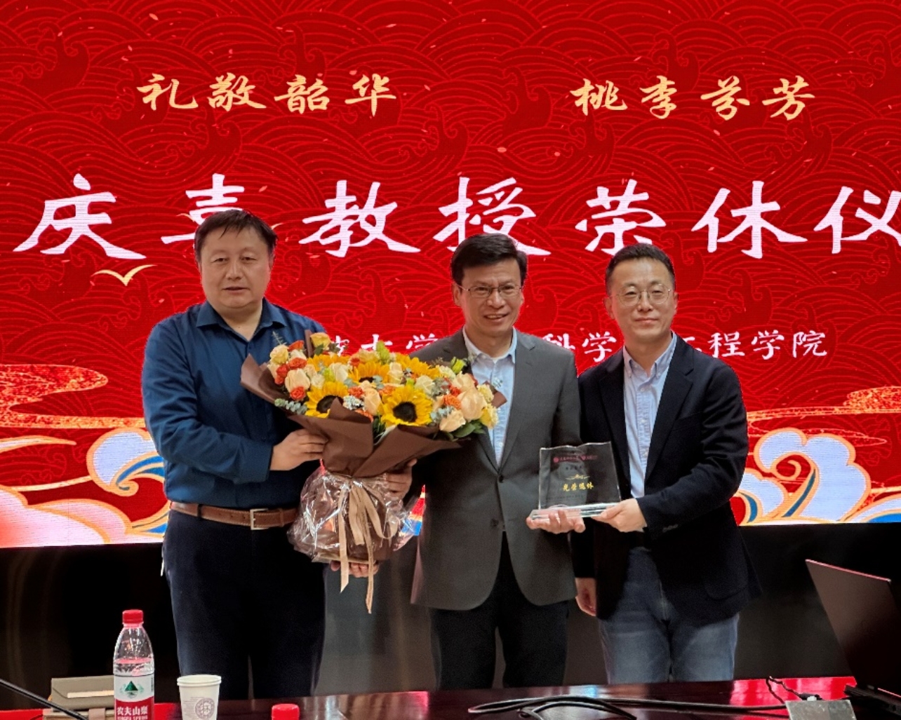 荣休仪式中,苟军平书记和刘洪斌院长代表学院对侯庆喜教授表达了诚挚的感谢与祝福,并赠送了精美的纪念礼物。苟军平书记在致辞中高度肯定了侯庆喜教授在学院和学科发展中发挥的重要作用、师者的责任与担当、为教师队伍建设提供的宝贵经验,以及为学院培养大批优秀学子所付出的努力,并热情邀请他继续为学院的发展建言献策、贡献力量。刘洪斌院长饱含深情地回顾了与侯庆喜教授共事的点点滴滴的时光,充分肯定了侯庆喜教授对学科发展和人才培养的辛勤付出和重要贡献,更寄语青年教师们弘扬教育家精神,深入落实立德树人根本任务,共同开创学院的美好未来。