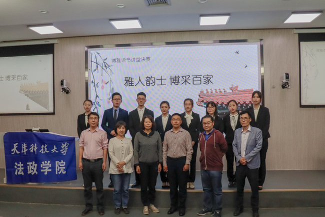 为了培养我校学生阅读兴趣、加强书香校园建设,法政学院于2018年5月8日中午12点30分于图书馆第一学术报告厅举办了天津科技大学第二十四届博雅读书讲堂决赛,本次活动由法政学院法蕴人文协会以及图书馆弘文学生协会承办。出席本次活动的嘉宾有:图书馆党委副书记李晓丽老师、图书馆副馆长王卉老师、法政学院副院长于志勇老师、生物工程学院殷衍韬老师、法政学院于冰轮老师、法政学院穆庆夏老师。活动由李钦娱、曹增辉主持。