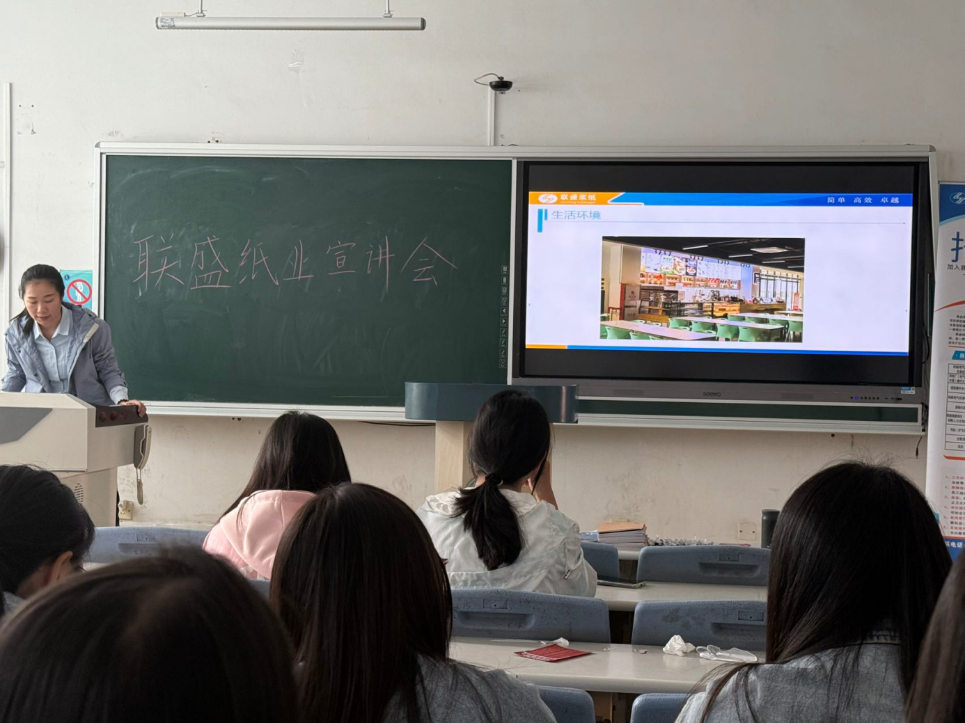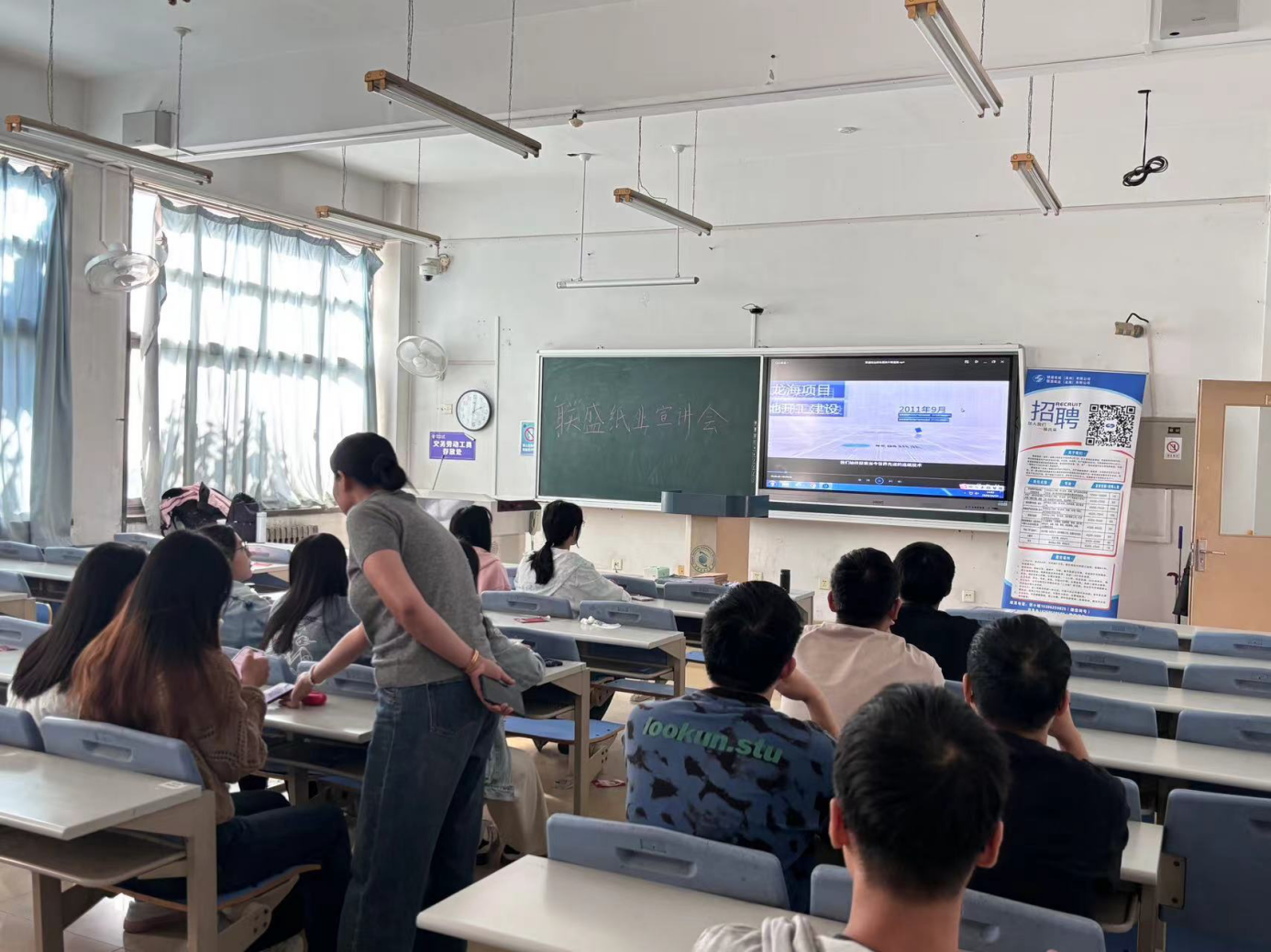 为促进毕业生高质量就业,加强校企合作,2024年10月10日下午,轻工科学与工程学院在滨海校区中院3号楼303教室举办了联盛纸业天津科技大学校园宣讲会。宣讲会由联盛纸业招聘负责人张经理进行宣讲,学院2021级相关专业本科生参加此次宣讲。