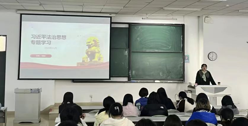 文法学院党委委员、法学系教工党支部书记、法学系主任郭婧滢老师,围绕“习近平法治思想专题解读”展开讲授,深入剖析了法治思想的核心要义和实践要求,引导学员们树立法治观念,增强法治意识。