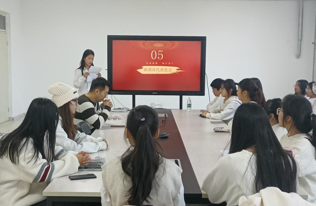 新团员代表张义凡发表了入团演讲,说明了我们作为中国共产主义青年团的一员所肩负的责任与担当,作为新团员,要更加严格地要求自己,加强学习,积极实践,不断提高自我,肩负起作为一名共青团员的责任,绽放自我的光芒。老团员代表王姝姨谈到,共青团员要始终坚定自我信念,积极进取,激励共青团员要抓住机遇,紧随时代步伐,为青少年树立榜样。随后,所有团员面向团旗共同唱响团歌。