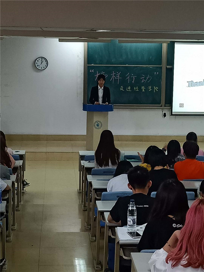 财务管理实验班的王艺颖有着很强的集体荣誉感和突出的班级管理能力,成绩优秀的她向同学们介绍了学习数学的有效方法和技巧。自动化实验班的李磊磊分享了自己成功的经验,建议同学们要果断的把握住机会,并强调良好的心态也是成功路上必不可少的。国际学院的岳典通过解释"权"和"衡"来告诉同学们要学会自我调节,消化情绪,在正确的事情上多做努力,还要懂得感恩。