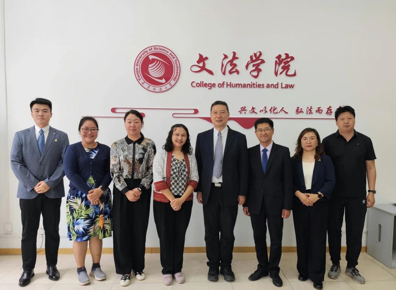 5月14日上午,泰国皇家理工大学代表团一行到校交流访问,泰国皇家理工大学人文社科高等研究院院长吴立杰、人文学院副院长ROTSUKHONSONGKHONG、教授RAPEE SWANGJANG等出席交流活动。我校国际交流处、文法学院、艺术设计学院等相关学院领导参加交流会。会议由文法学院院长吴振军主持。