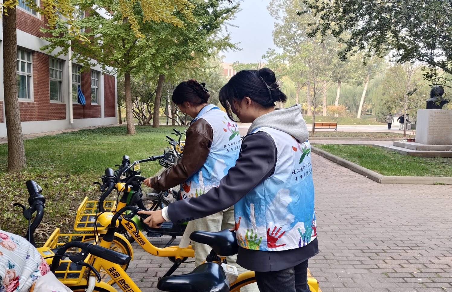 在志愿者们的共同努力下,4号楼前的共享单车停放区域变得井然有序,原本杂乱无章的单车现在整齐划一地排列在一起,为校园增添了一道亮丽的风景线。此次活动不仅有效改善了校园内的交通状况,提升了师生的出行体验,更在全校范围内营造了浓厚的文明氛围。