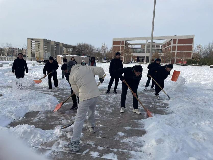 大雪伴着寒风,一夜白了大地,银装素裹的校园显得格外美丽,但堆满积雪的路面却给师生们的出行带来了很多不便和安全隐患。为方便师生出行,生物工程学院组织受助学生开展志愿清雪教育活动,12月15日早9时,在学院资助专项负责老师樊云光的带领下,20余名新生受助学生对滨海校区校园主干道的积雪进行了及时清扫,确保了校园道路安全畅通。