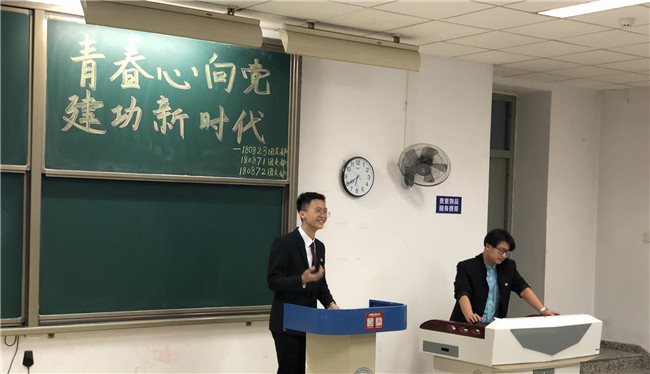 各团支部团员有序入场,并齐唱国歌、团歌以抒发强烈的爱国主义情怀。为让大家更加清晰的了解历史,以史为鉴,龚傲同学生动形象地为大家讲授了团课。知识竞答环节不仅考验了同学们对于历史知识的了解,也增强了同学们的团队意识和集体责任感。