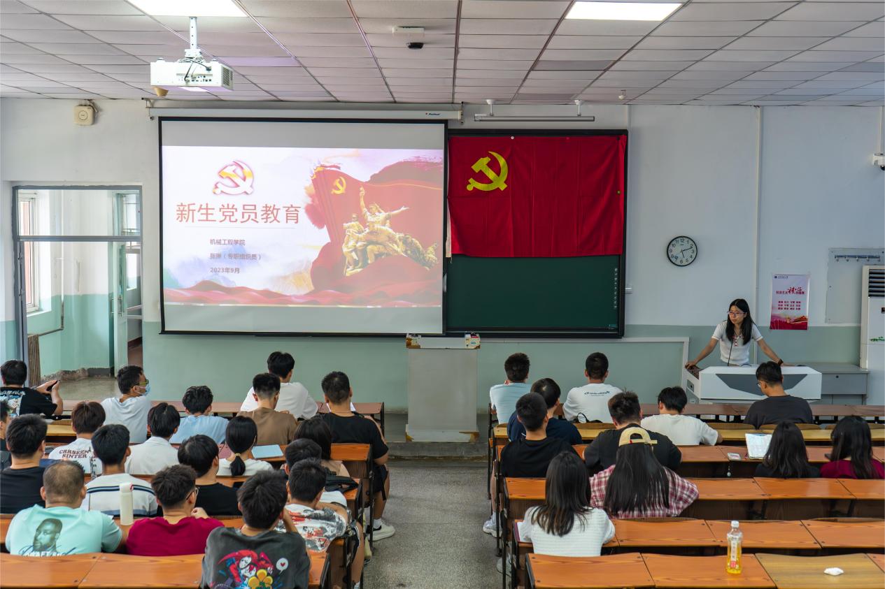 为引领新生党员提高思想认识与党性修养,增强组织观念与纪律意识,牢记党员初心,扎实专业学习与研究,发挥先锋模范作用,9月18日中午,机械工程学院于河西校区第八阶梯教室召开新生党员教育大会,学院专职组织张琳担任主讲,2023级研究生党员参加。