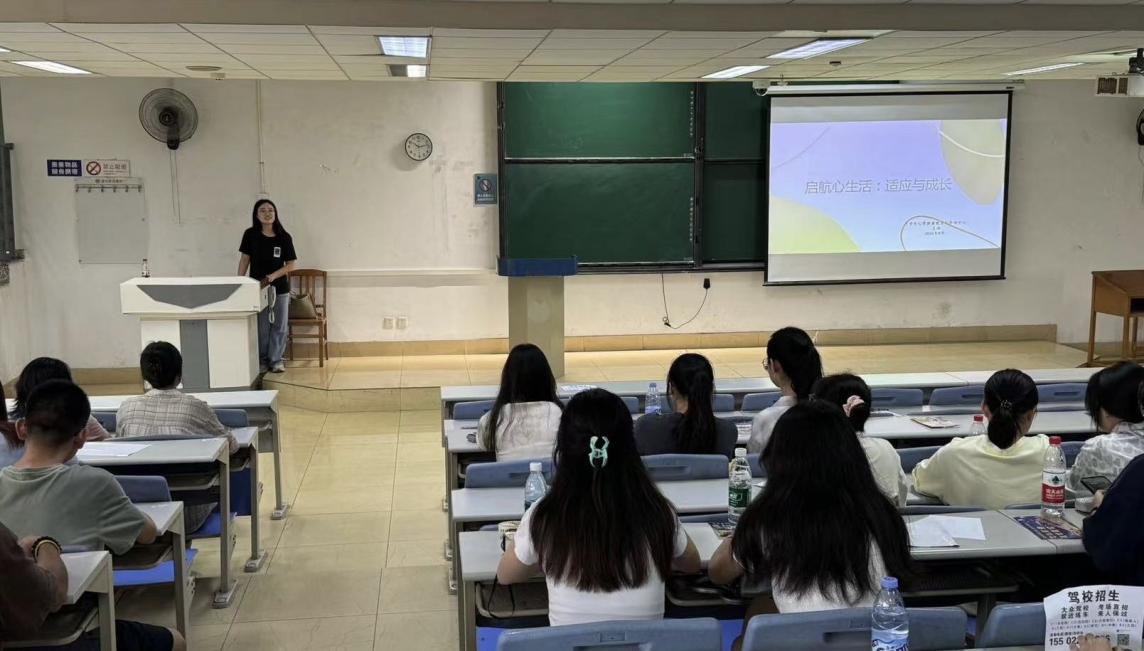 本次讲座由王涛老师主讲,从如何适应大学生活,如何调节宿舍关系,如何正视专业调剂,以及心理问题产生的原因四个方面展开分析。她以敏锐的洞察力与深厚的专业素养,直击新生普遍面临的困惑与挑战,结合视频与真实案例,用平易近人的语言为同学们搭建起一座从迷茫到清晰的桥梁,帮助同学们树立正确的人生观与价值观。为新生们未来健康的大学生活奠定坚实的基础。王老师特别强调了科学心态的重要性,鼓励学生们以积极、开放的心态拥抱大学生活,学会在探索中成长,在挑战中超越自我。
