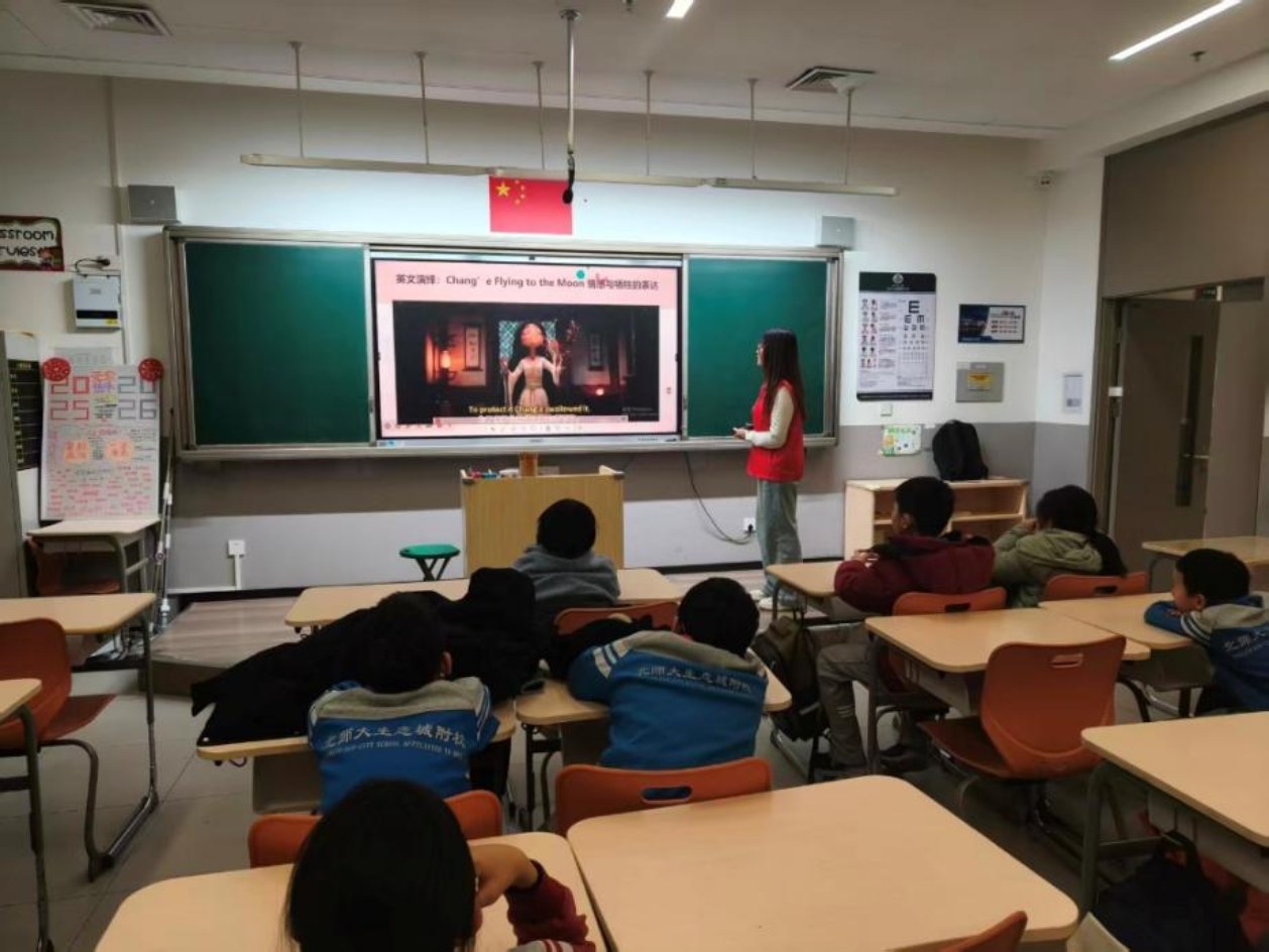 1月4日,外国语学院星火讲师团走进生态城北师大附小,开展了“用英语讲述中国故事”主题实践活动。此次活动以语言为桥,以文化为魂,让同学们在双语世界中提升语言学习能力,感受双语环境下中华优秀传统文化的魅力。